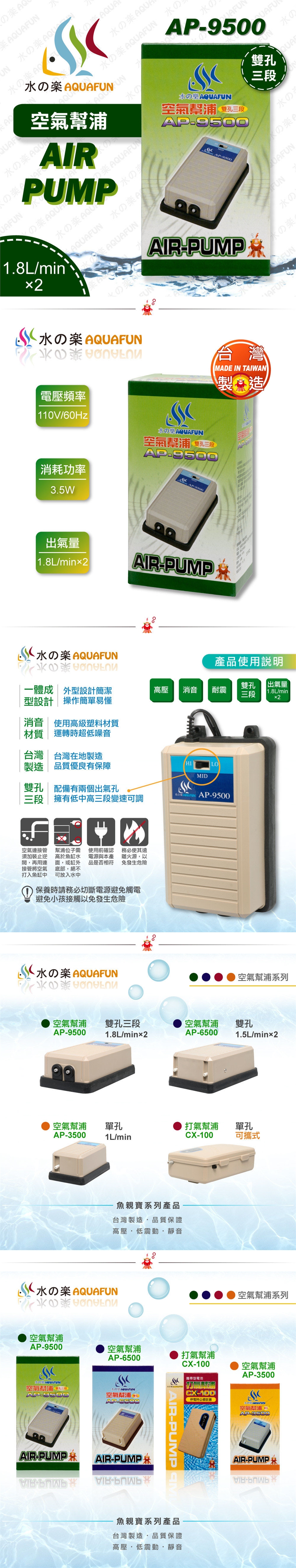 ● 商品名稱:水之樂 AP-9500空氣幫浦(雙孔三段)
