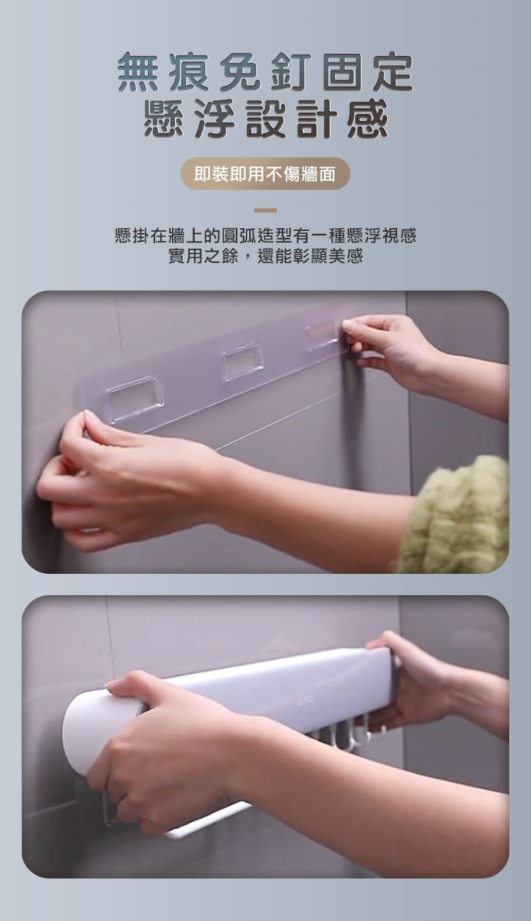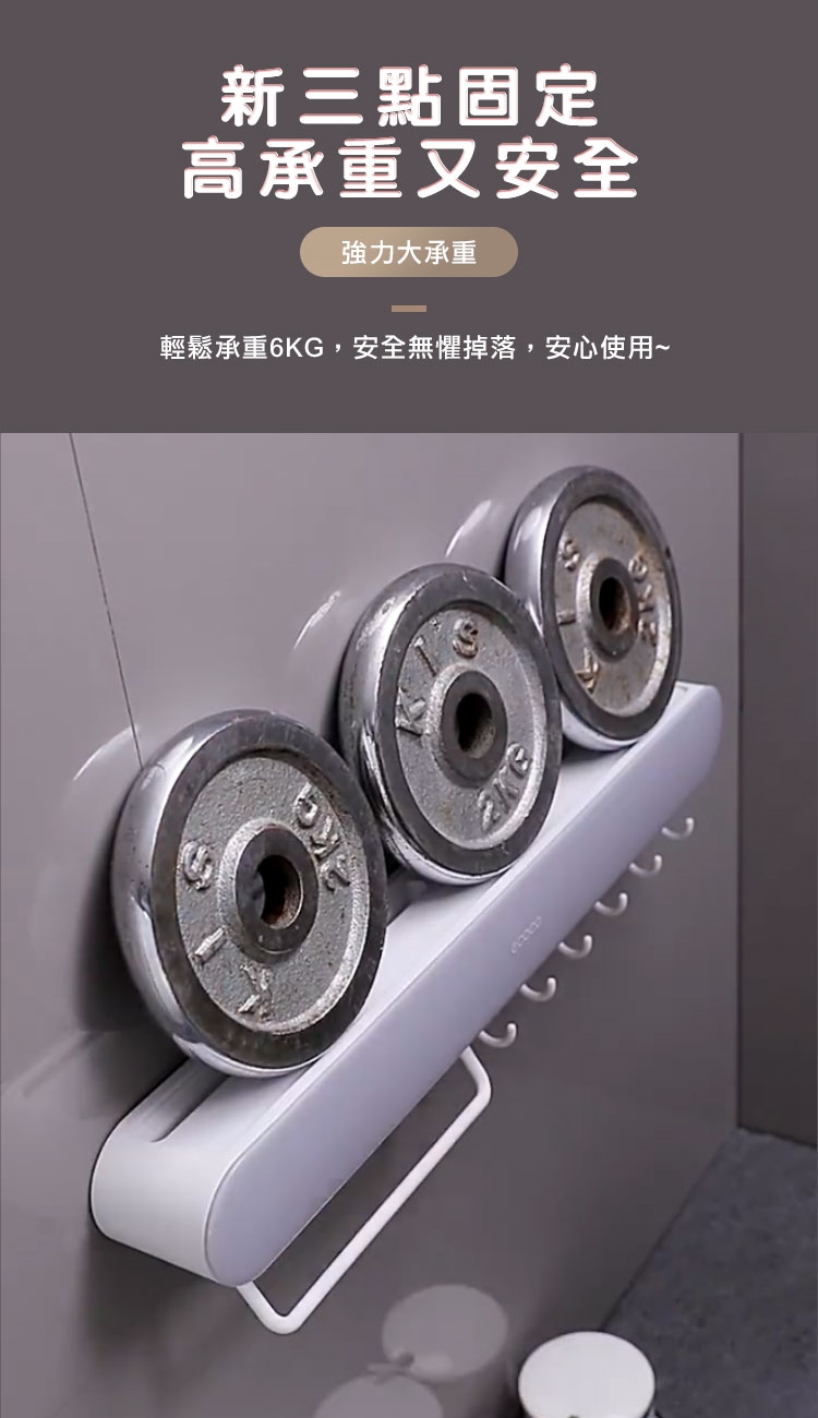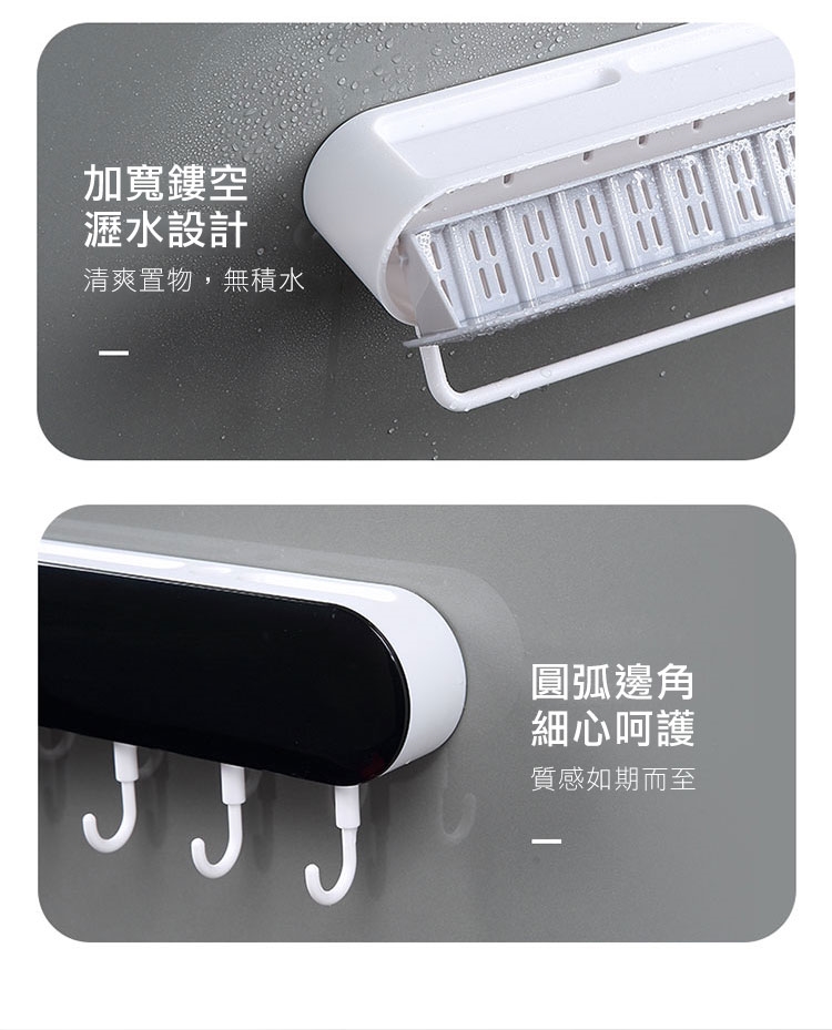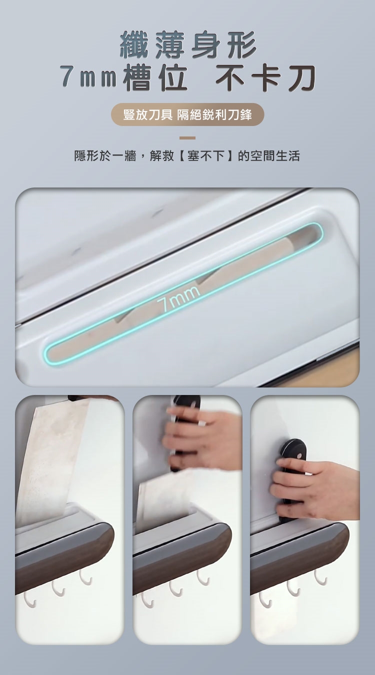 內容物:收納筷刀架x1/防水耐重無痕貼片x1/擦布掛架x1/活動掛勾x6