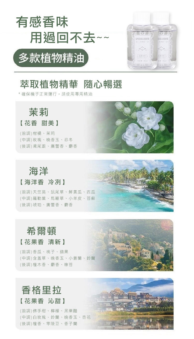 精油款式:海洋精油/茉香精油/希爾頓精油/香格里拉精油