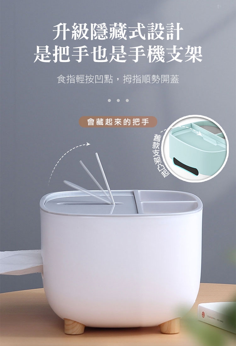 新款北歐多功能橫抽面紙盒,升級北歐風木紋腳架,造型圓潤時尚品味,新隱藏式手機架使用再加分,多功能一體設計,同時可作為置物架、手機支架,還可收納多種小物!橫抽式面紙盒空間不浪費,品味時尚與實用收納兼具的紙巾盒~
