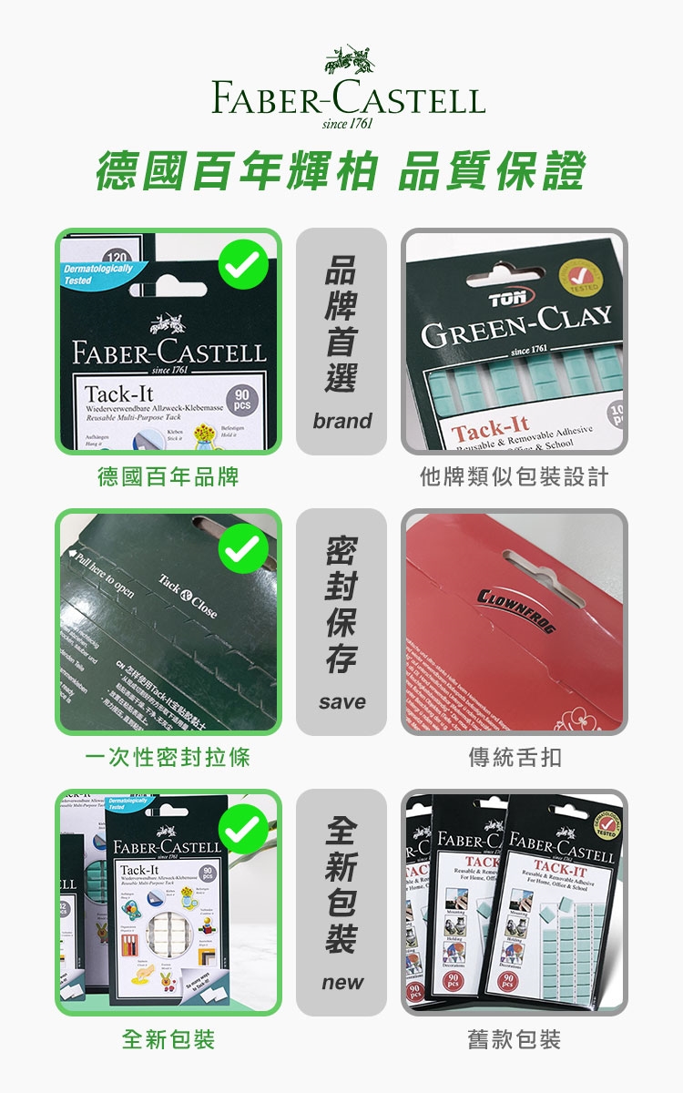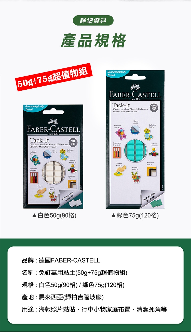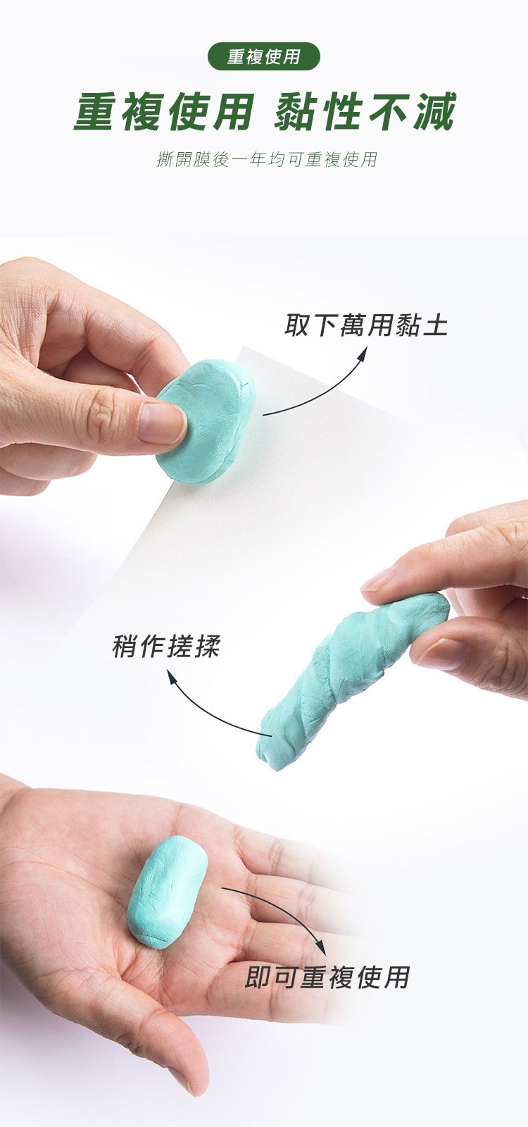 還在為布置家裡傷腦筋嗎? 釘牆怕傷害牆面,雙面膠或膠帶又害怕有殘膠難以清潔? 快來試試這款萬用黏土,取代傳統鑽牆固定方式,隨貼即用,拆卸不留痕跡。用途廣泛,可塑性高,可重複黏貼,不懼歪斜,適合各種居家布置。也可做清潔使用,輕鬆吸附灰塵髒污。德國百年品牌 Faber-Castell 輝柏 品質保證快來試試吧~!