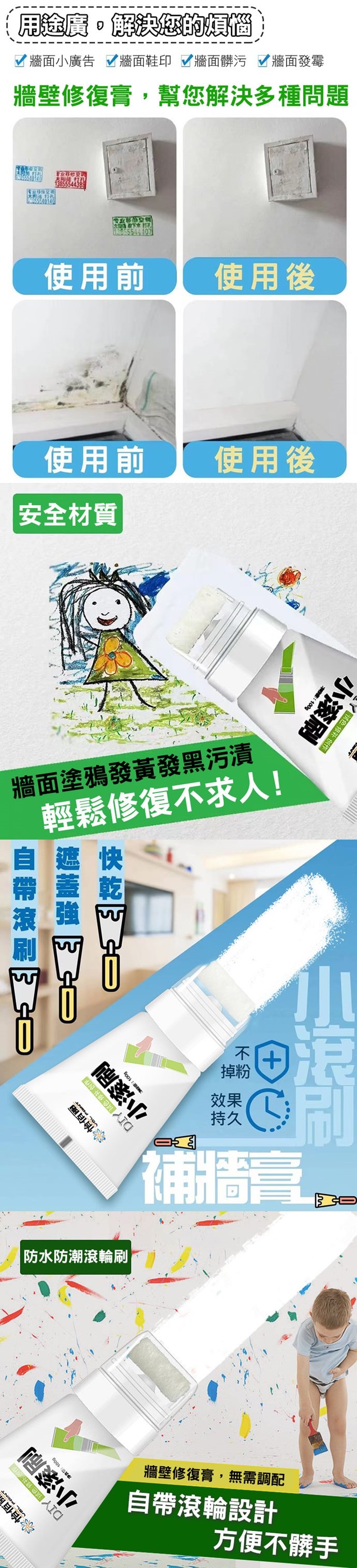 3.使用限制:不適用於潮濕面、油性表面及疏鬆老化的墻面。