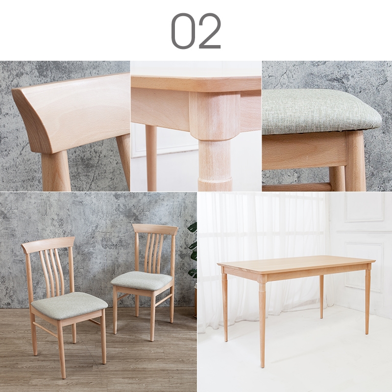 餐桌採用優質山毛櫸實木,承重力高,穩固耐用不易搖晃變形!