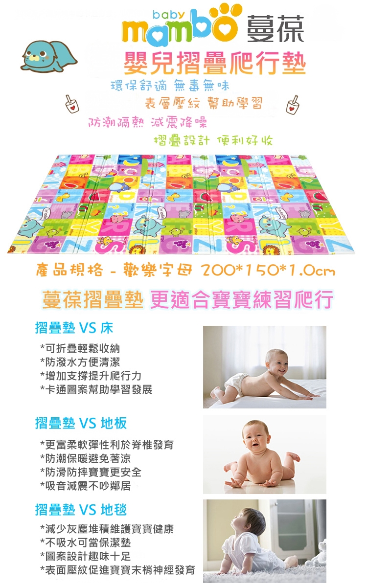 【品牌】:蔓葆摺疊嬰兒爬行墊 - 1cm厚款字母
