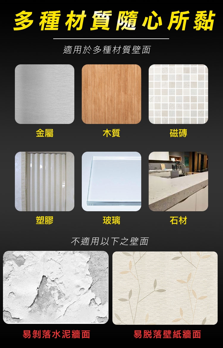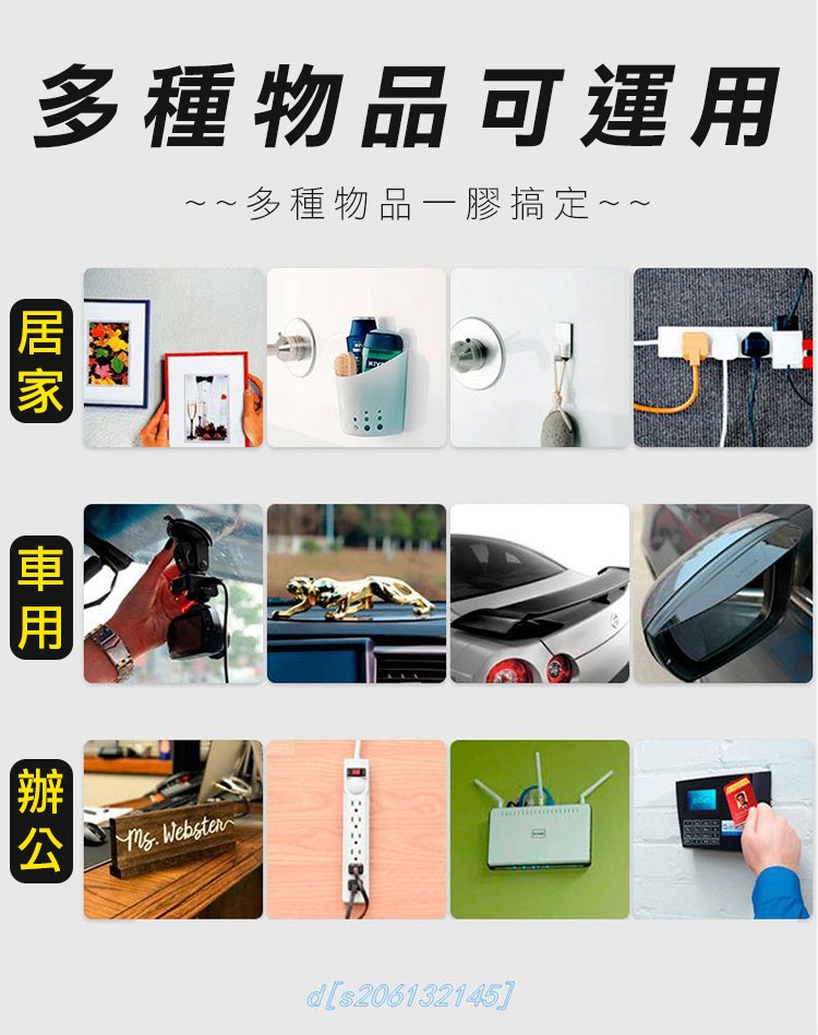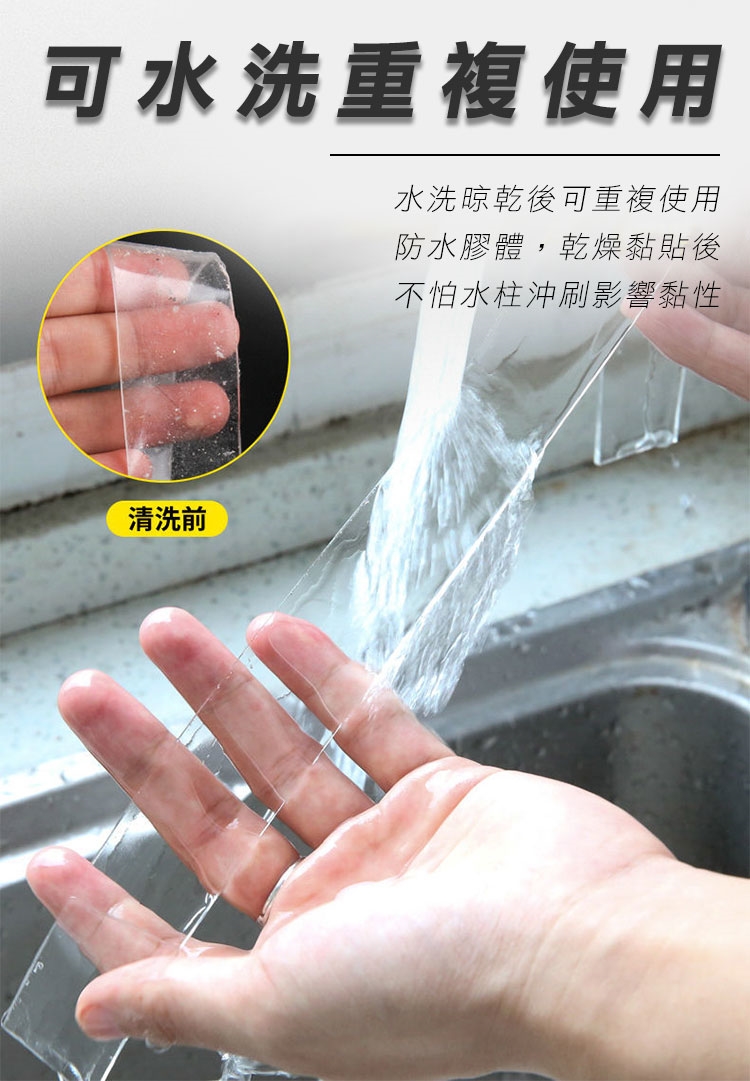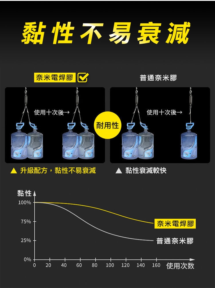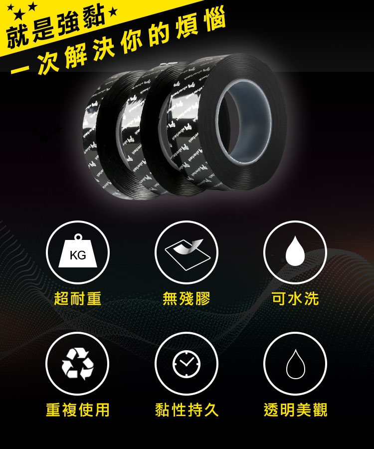 有了超耐重無痕防水奈米電焊膠,再也不用鑽釘打孔安裝物品了!超強黏力 用雙面膠代替電鑽電焊,免釘鑽、超耐重、防水防潮、高透明、撕下無痕不殘膠,安裝便利快速。可水洗,晾乾後可重複使用。現在只需把家中物品(收納架等)貼上奈米電焊膠,一樣可立馬搖身一變,變成超耐重防水無痕收納架。輕輕鬆鬆讓家中變成超實用無痕便利屋吧!