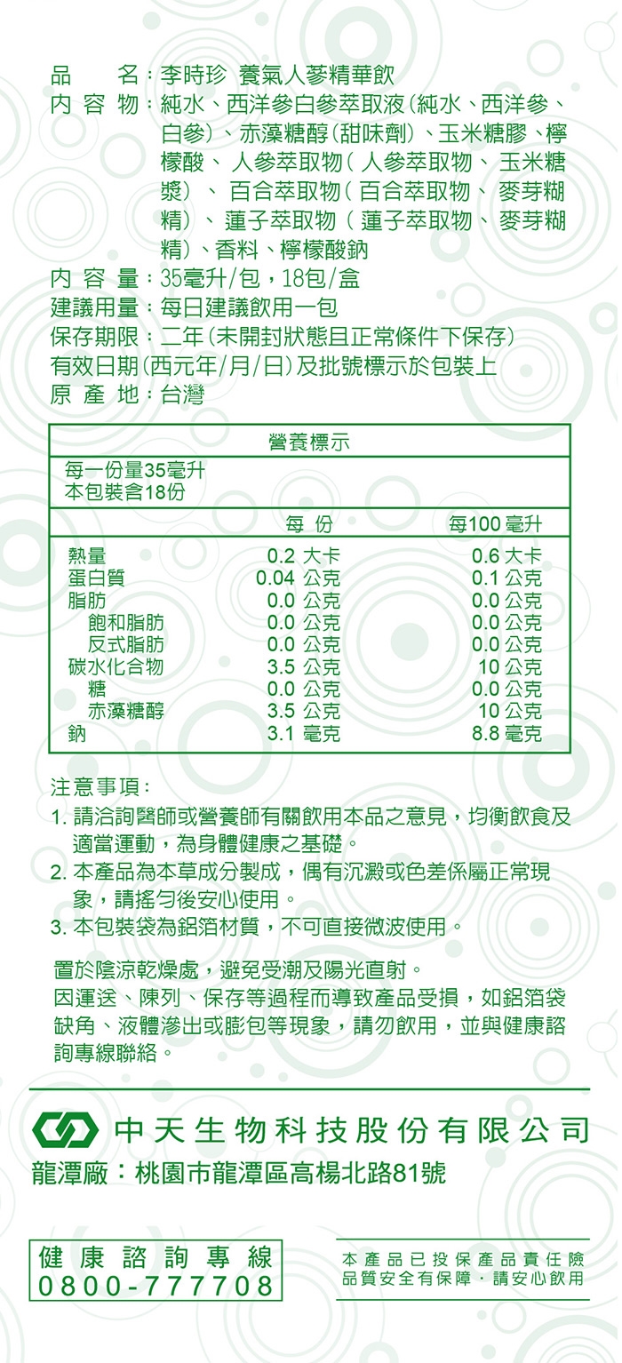 3.本產品為本草成分製成,偶有沉澱或色差係屬正常現象,請搖勻後安心食用。