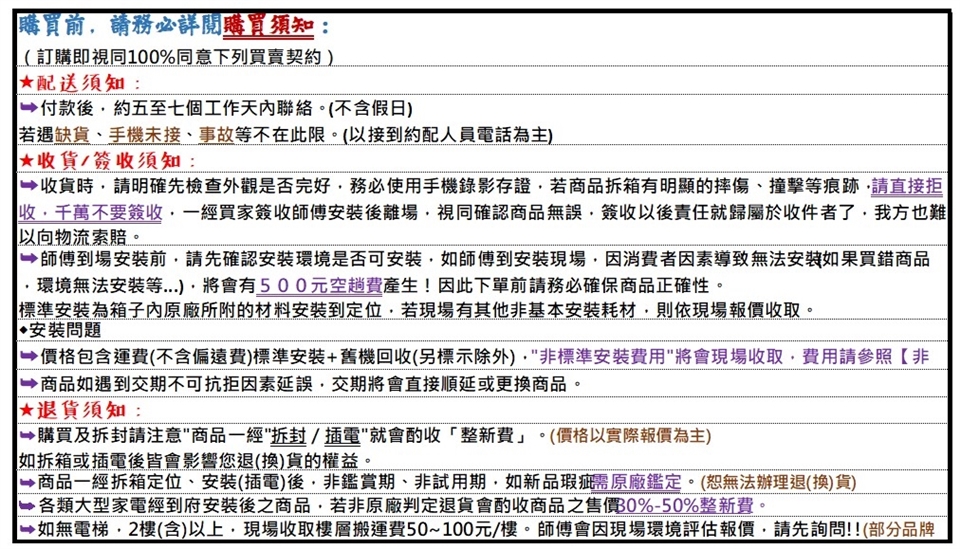 購買前請務必看過購買需知表