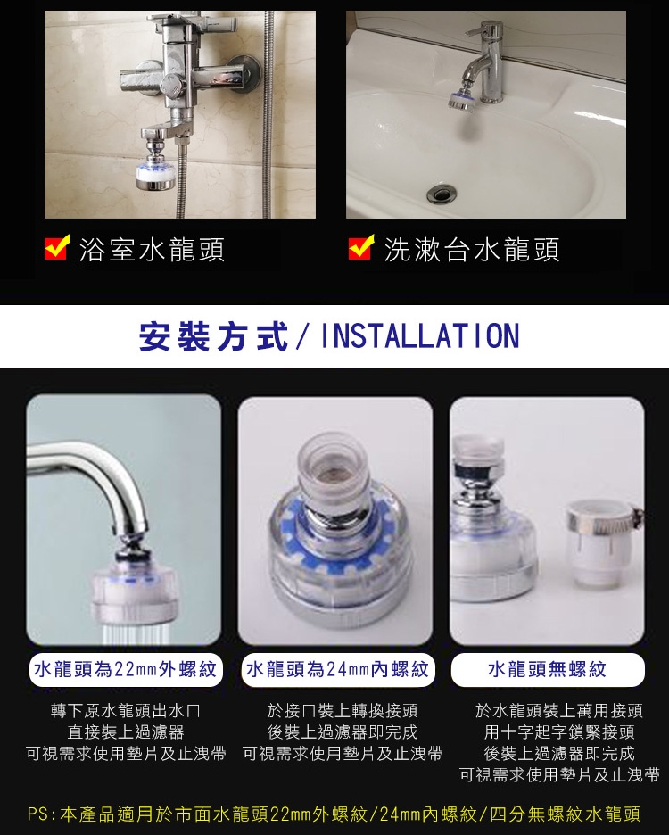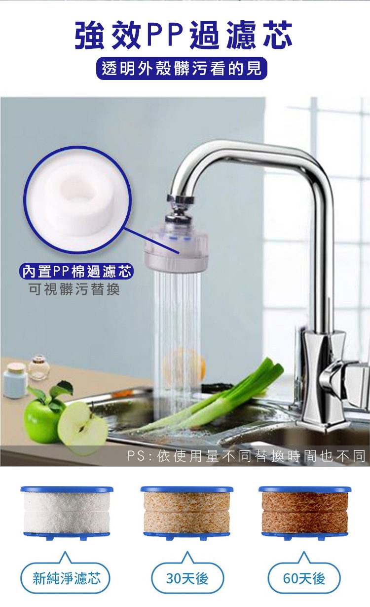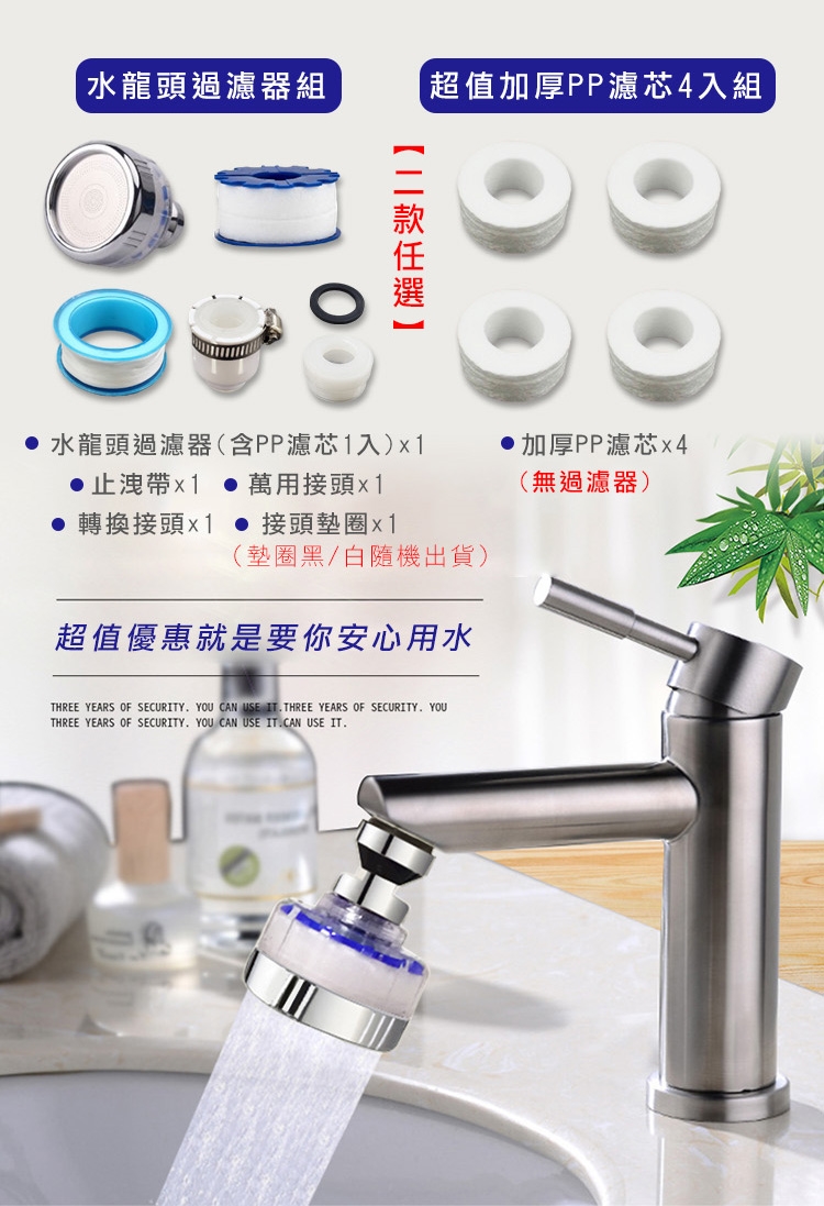 ※本檔販售360度增壓水龍頭過濾器、超值加厚PP濾芯4入組,兩者任選,非組合販售,請知悉。