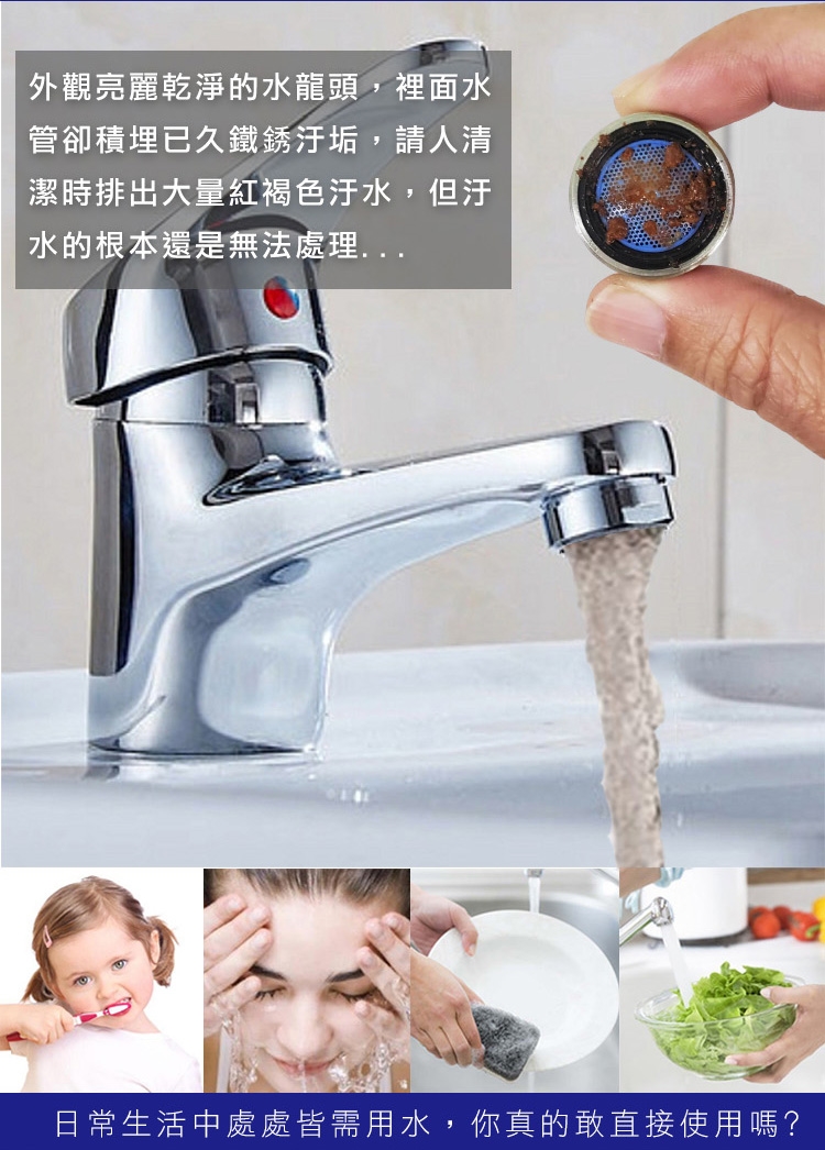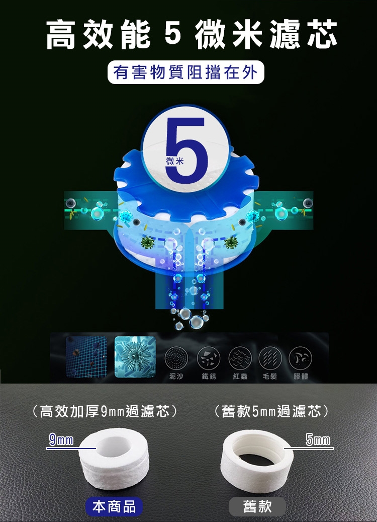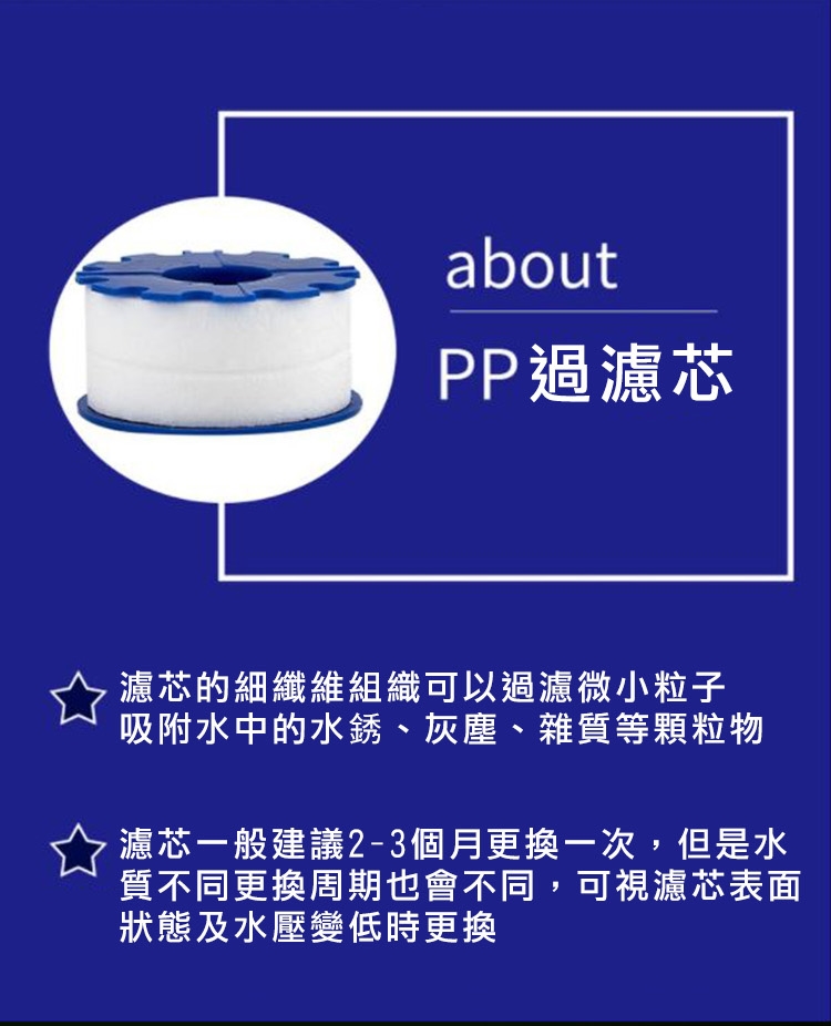 高效能加厚PP濾芯,有效過濾異物及髒水,還能阻擋含量過高餘氯(消毒水),可透視ABS外殼,隨時了解水質狀態,即時更換濾芯,360度轉向使用超便利,每組附超值配件,讓你快捷安裝無煩腦,家中水質靠它把關!