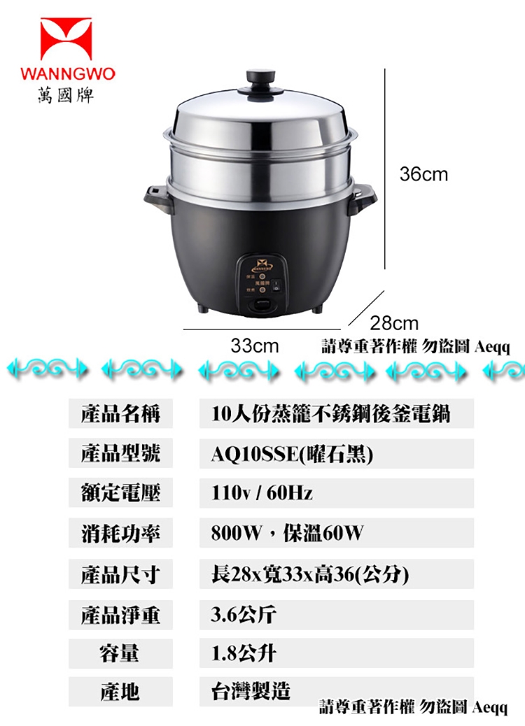 【萬國牌】10人份蒸籠不銹鋼厚釜電鍋(AQ10SSE)