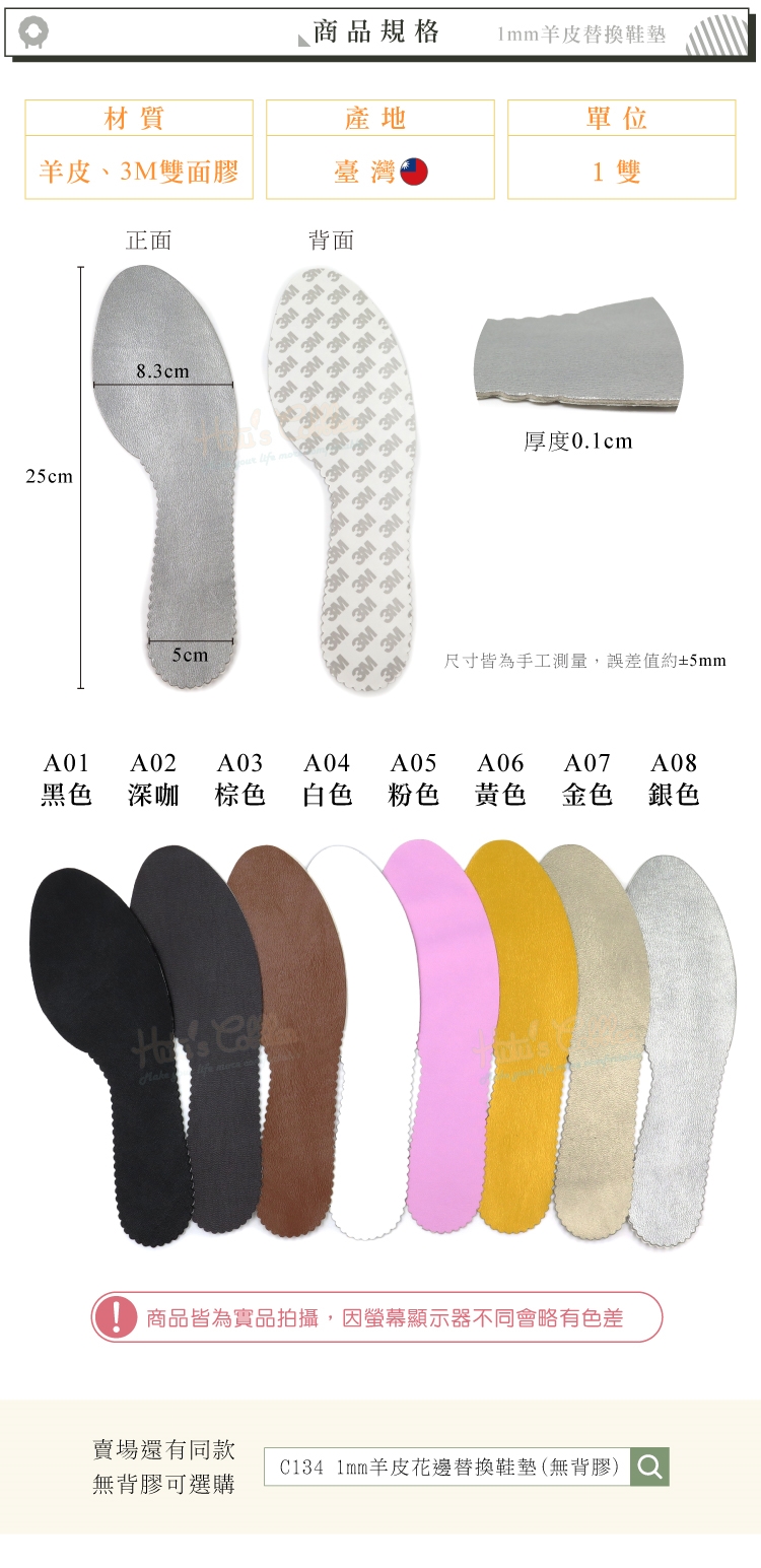 C134 1mm羊皮花邊替換鞋墊(無背膠)