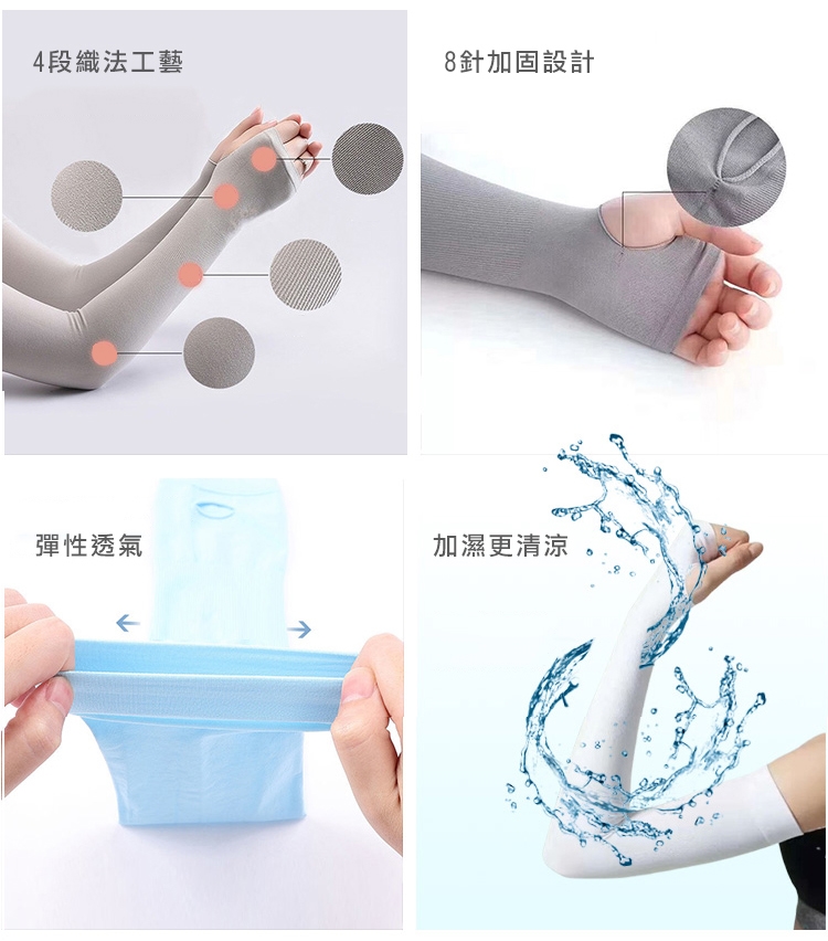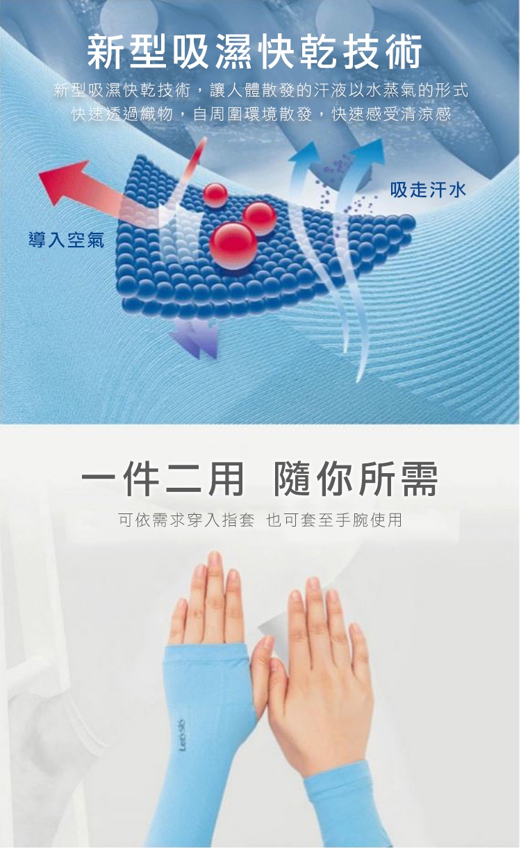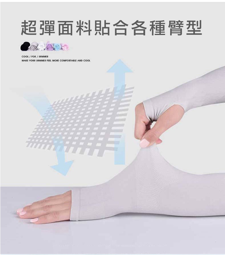 加長兩穿高彈力防曬袖套,加長超彈力延展, 舒適不緊繃,上臂不外露,特級冰絲材質,沾水再降溫,吸濕排汗快乾,讓身體保持涼感暢快,一件兩穿指套平口隨你所變,多種色系更讓你好搭配,炎炎夏日,預防手臂曬傷!