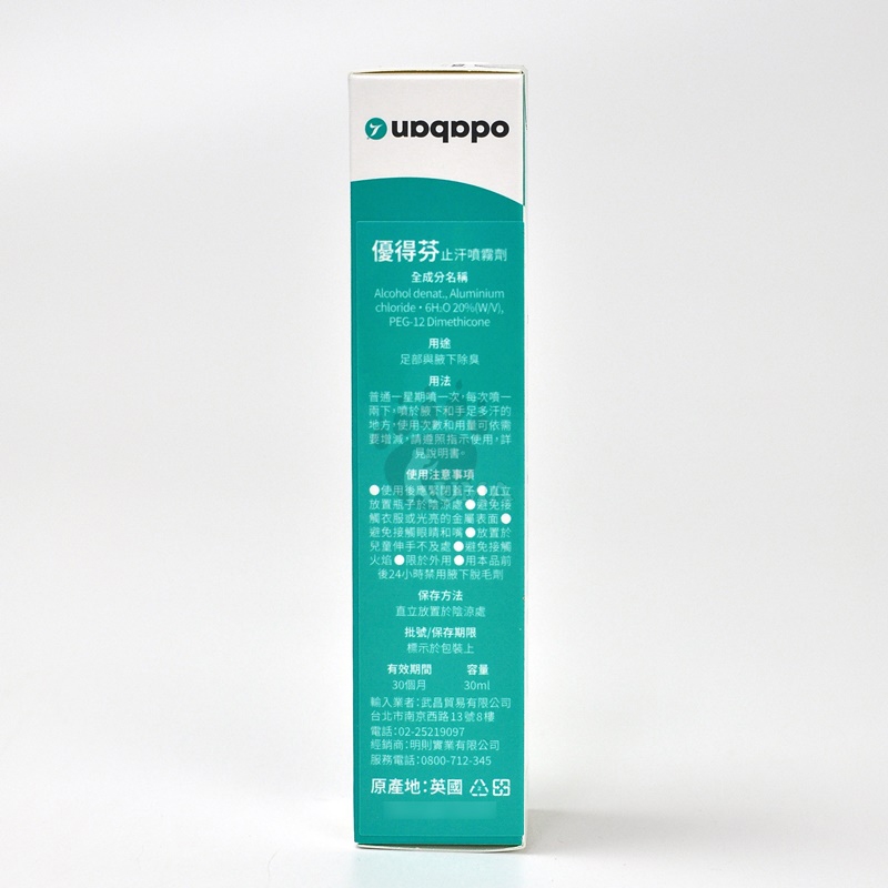 中文品名:優得芬 止汗噴霧劑