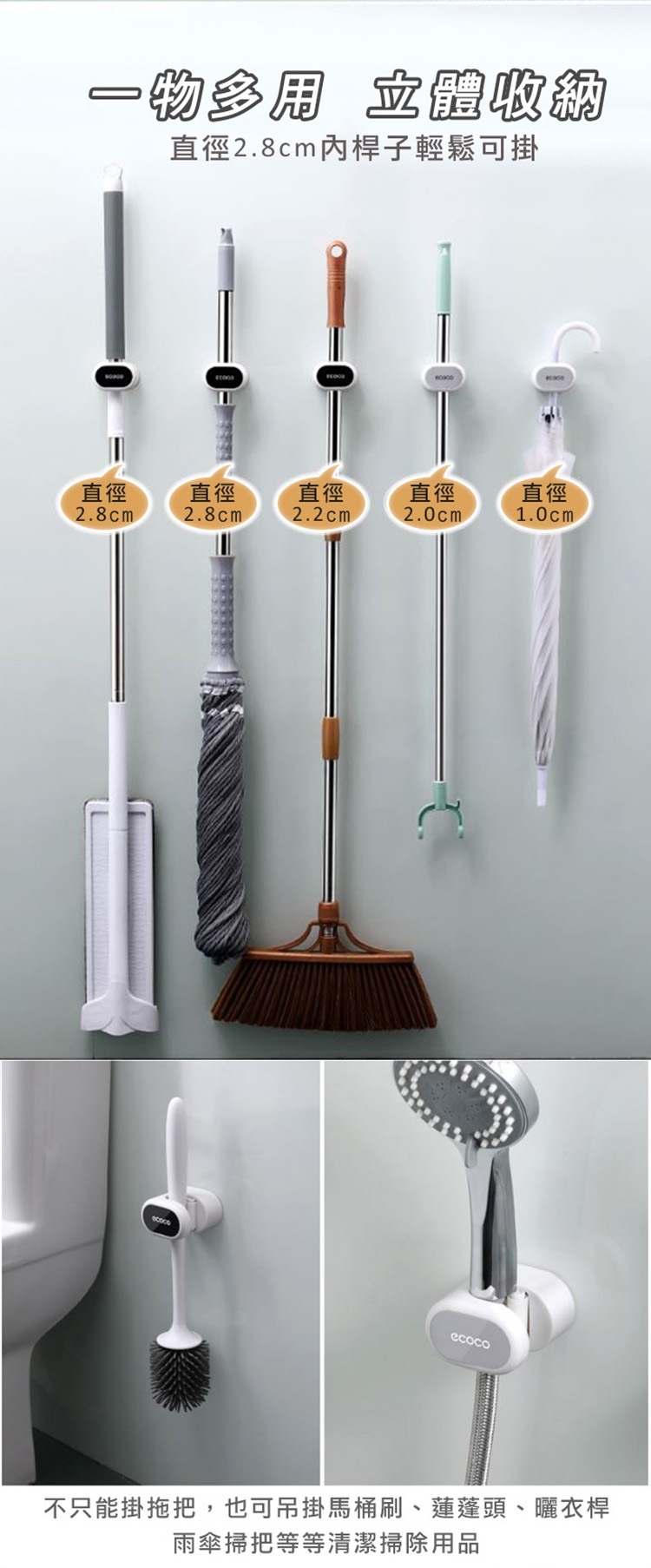 無痕美型多尺寸掃拖把掛架~輕輕壓,即可快速卡住物品,超實用!承重力佳,牢固不易脫落!便利無痕黏貼,免打孔不傷牆面、安裝超方便!多種尺寸可用,拖把、掃把、馬桶刷、湯勺、鍋鏟等多物可用~簡潔美觀,裝在那都合適,絕對適合有品味的你~