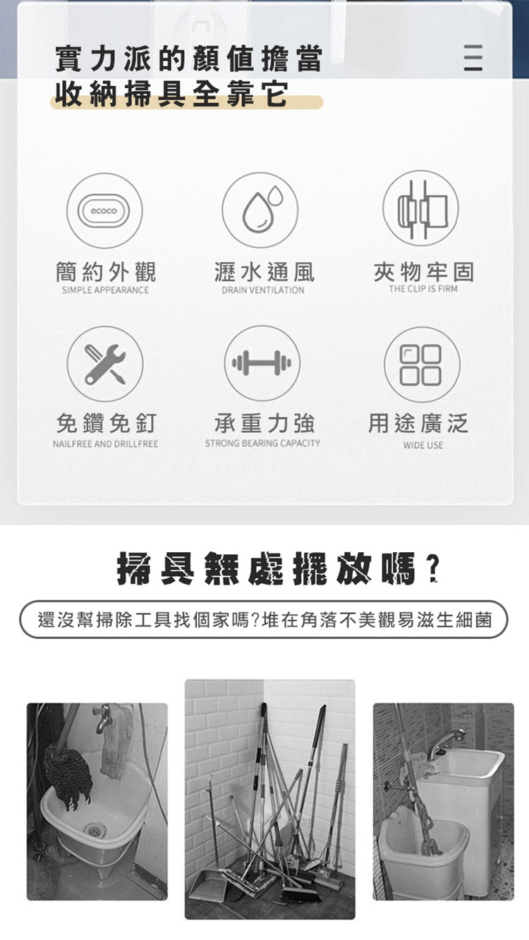 內容物:美型掃拖把掛架x1/防水耐重無痕貼x1