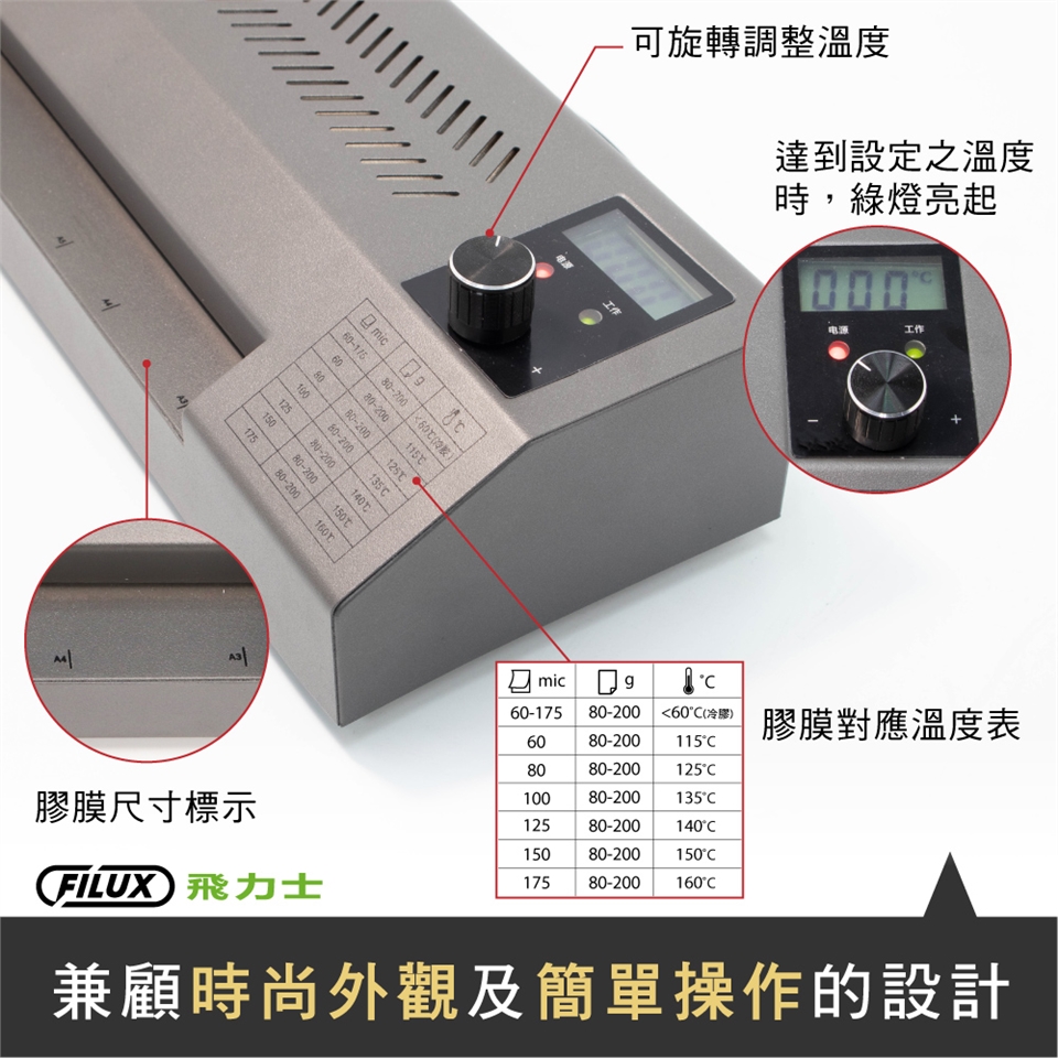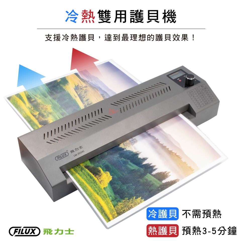鐵製耐用A3大尺寸(A4、A5、A6通用)冷熱護貝機LM351HC+20張護貝膠膜