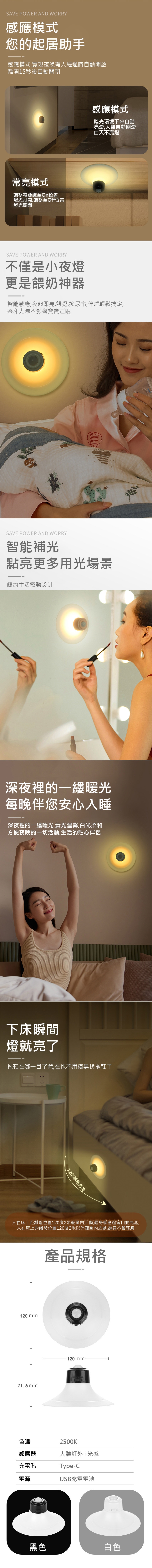 ◆雙模式選擇,黑夜人體感應或長亮夜燈