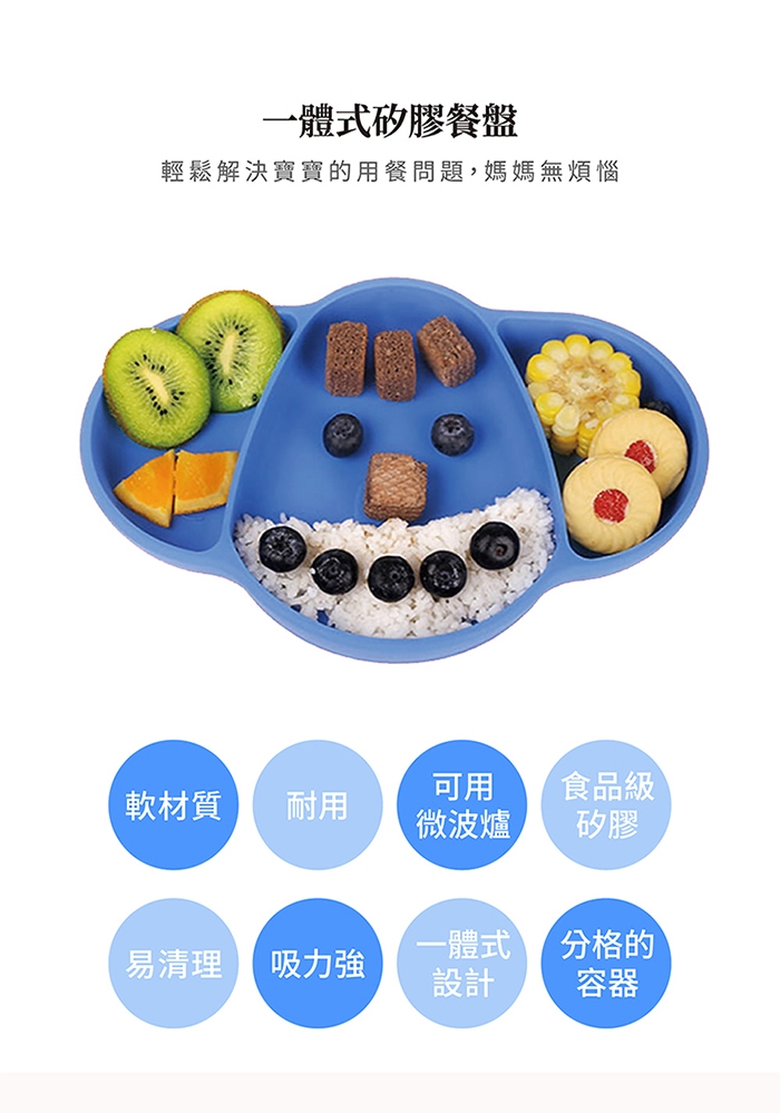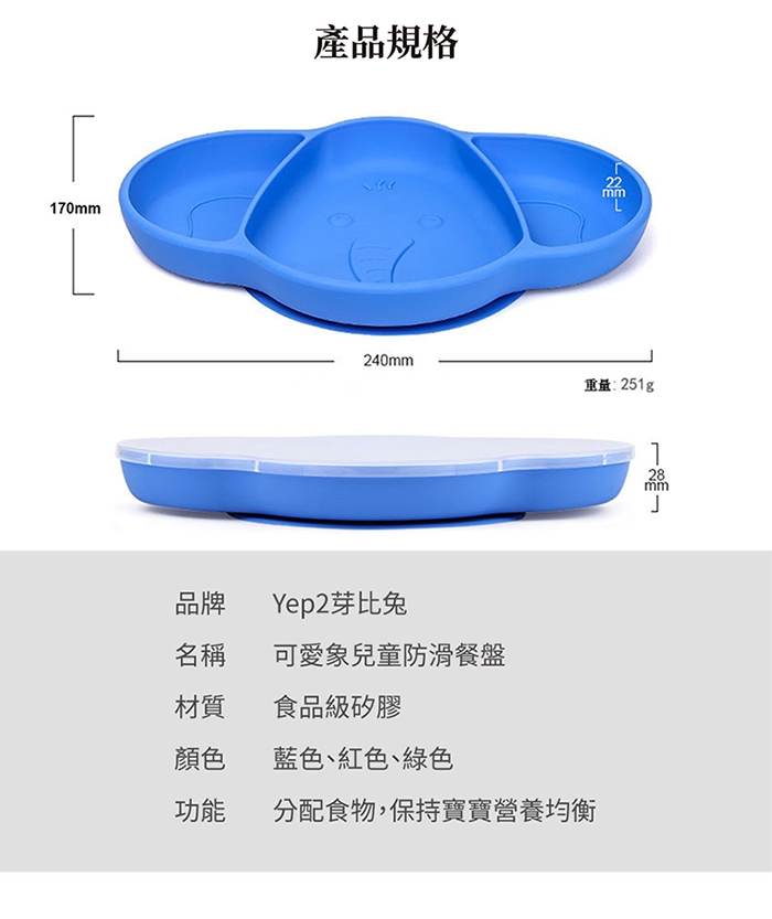 品名:可愛象造型矽膠防滑餐盤-附蓋