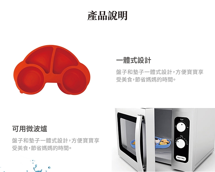 盤子和墊子一體式設計,方便寶寶享受美食,節省媽媽的時間。