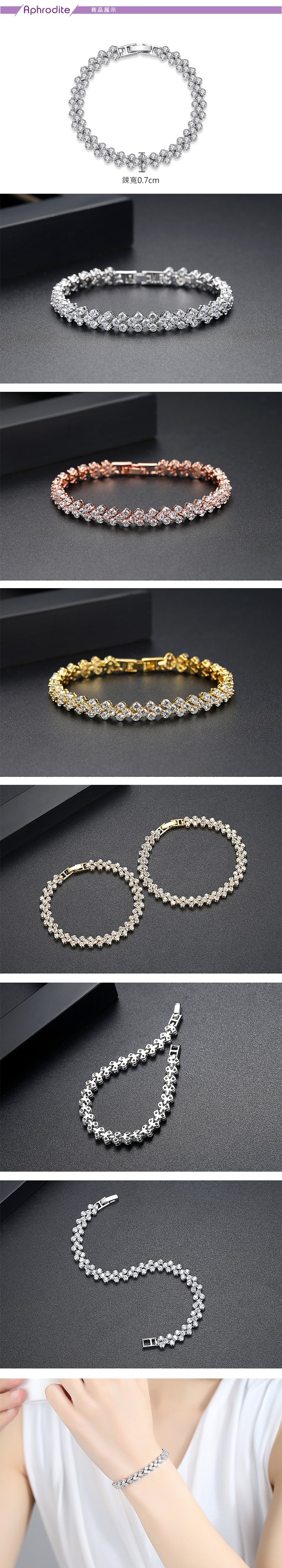 【愛芙晶鑽】閃耀華麗三排鋯石造型手鍊 造型手鍊 (3款任選)