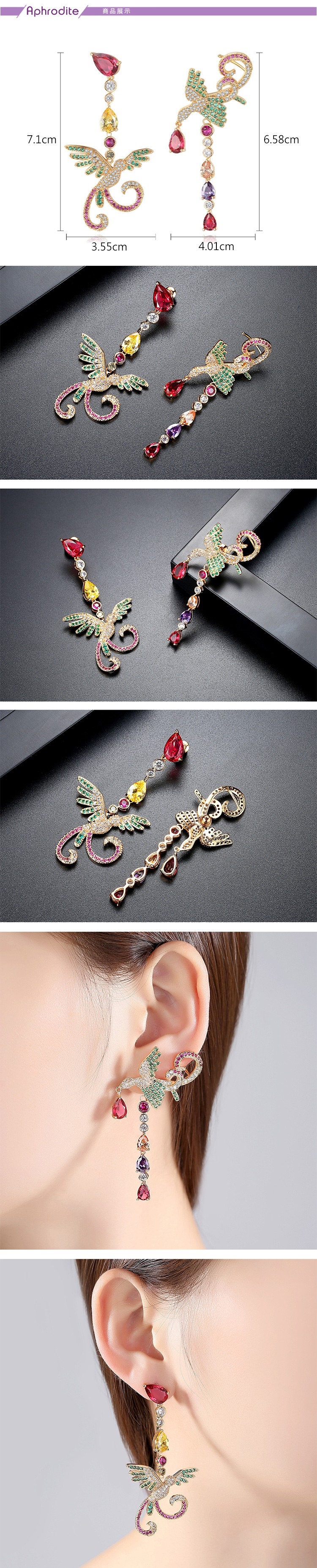 【愛芙晶鑽】華麗彩色寶石不對稱靈動鳳凰造型耳環 造型耳環