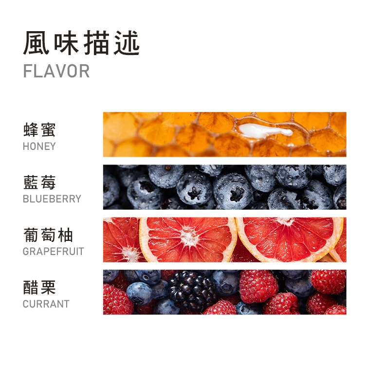 蜂蜜、藍莓、葡萄柚、醋栗