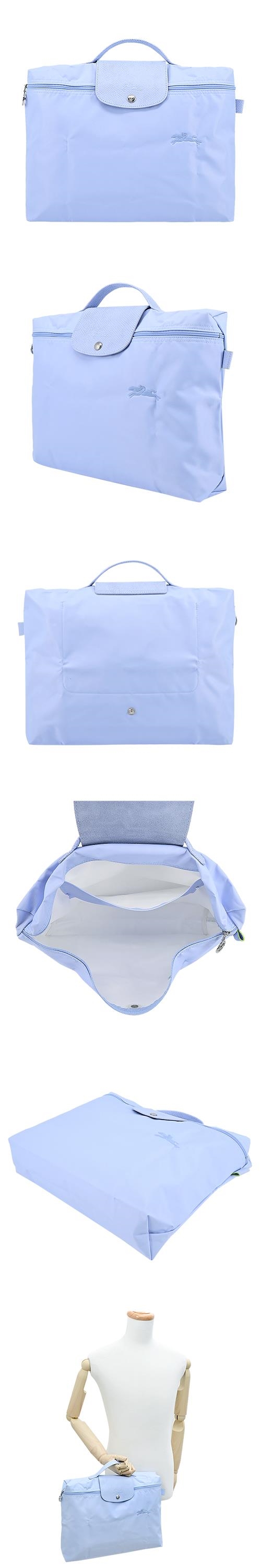 LONGCHAMP LE PLIAGE GREEN系列刺繡再生尼龍摺疊公事包(小/多色選)