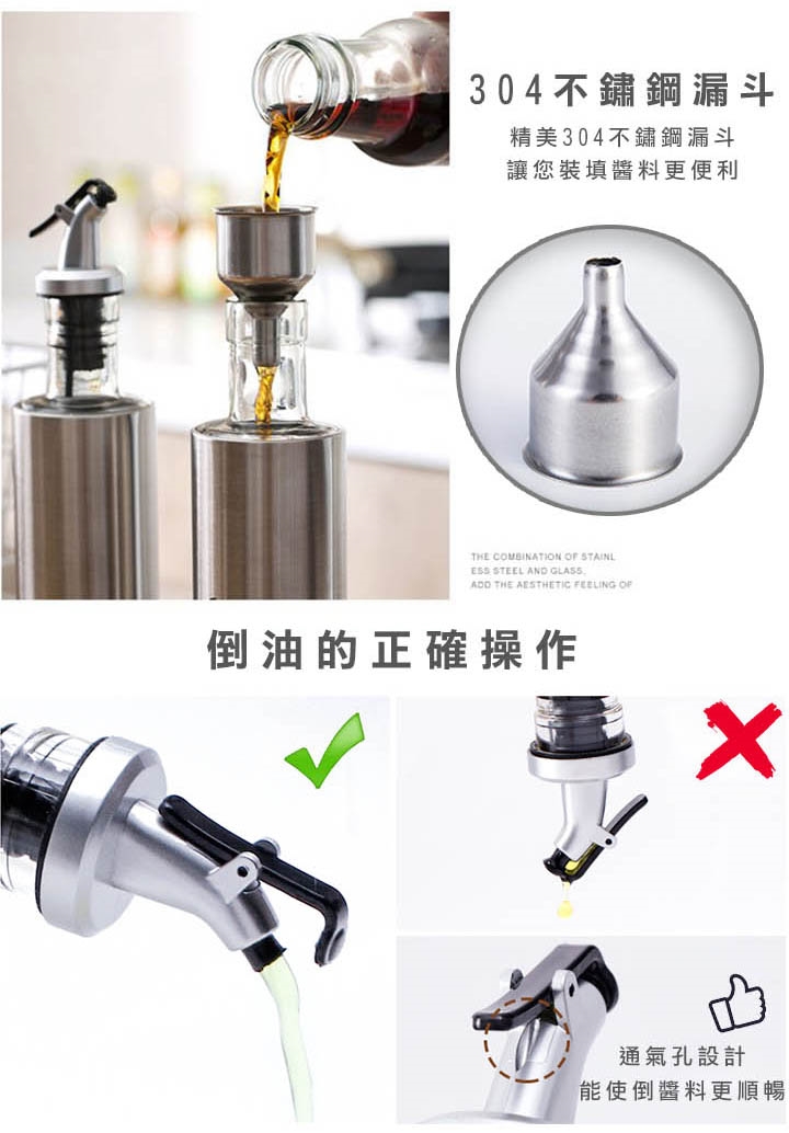 內容物:不鏽鋼調味按壓控量油瓶x1/304不鏽鋼漏斗x1