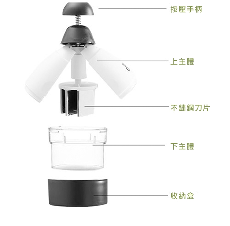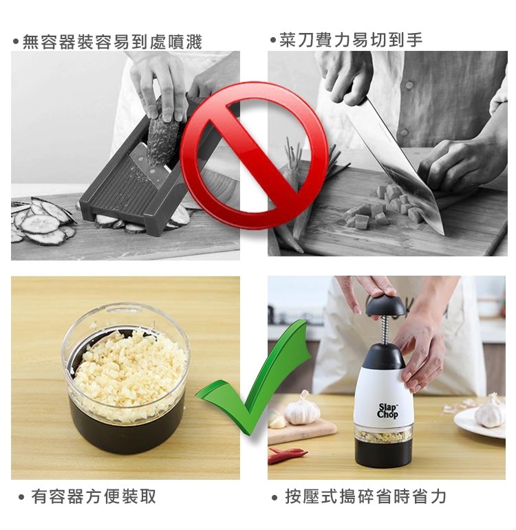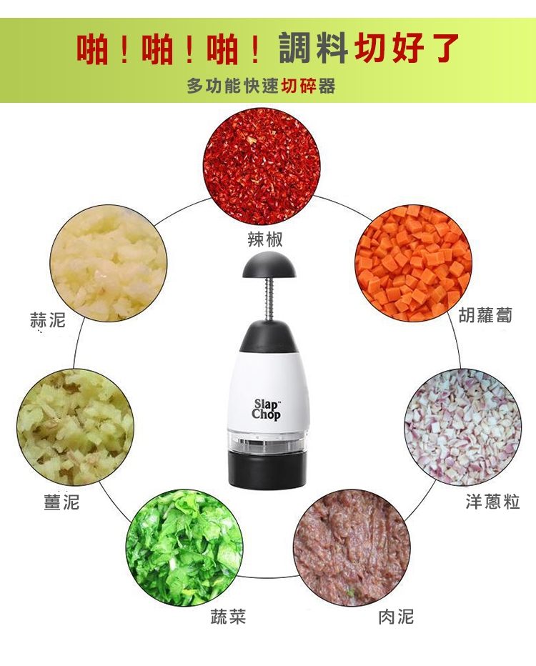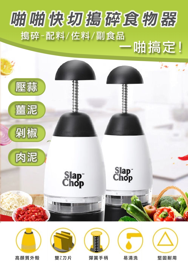 料理食物就是要快!啪啪快切搗碎食物器,讓你節省大把時間備料,免電免費力,快速按壓輕鬆搗碎食物配料,按壓多次越細碎,可拆卸好沖洗,便利省時不費力,居家/餐廳必備好物!