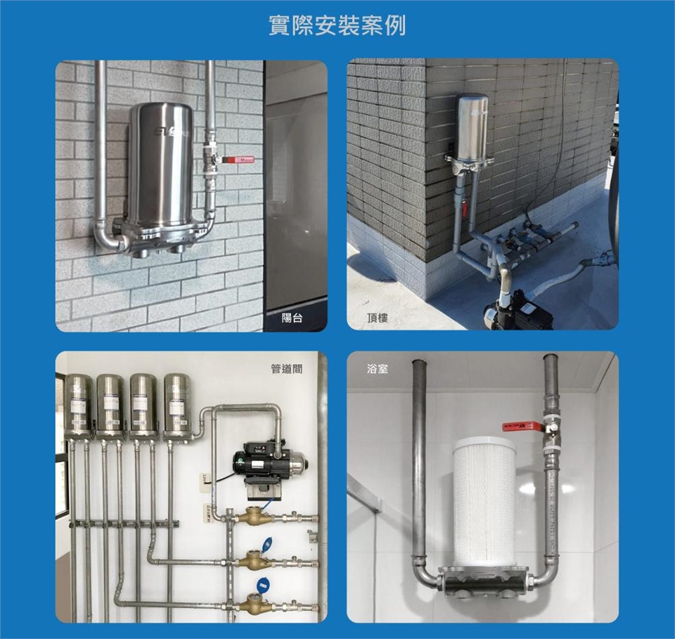 1.安裝管件以PVC(符合CNS認證)組裝,特殊安裝如:壓接、加裝馬達、打地..等需看現場另行報價。