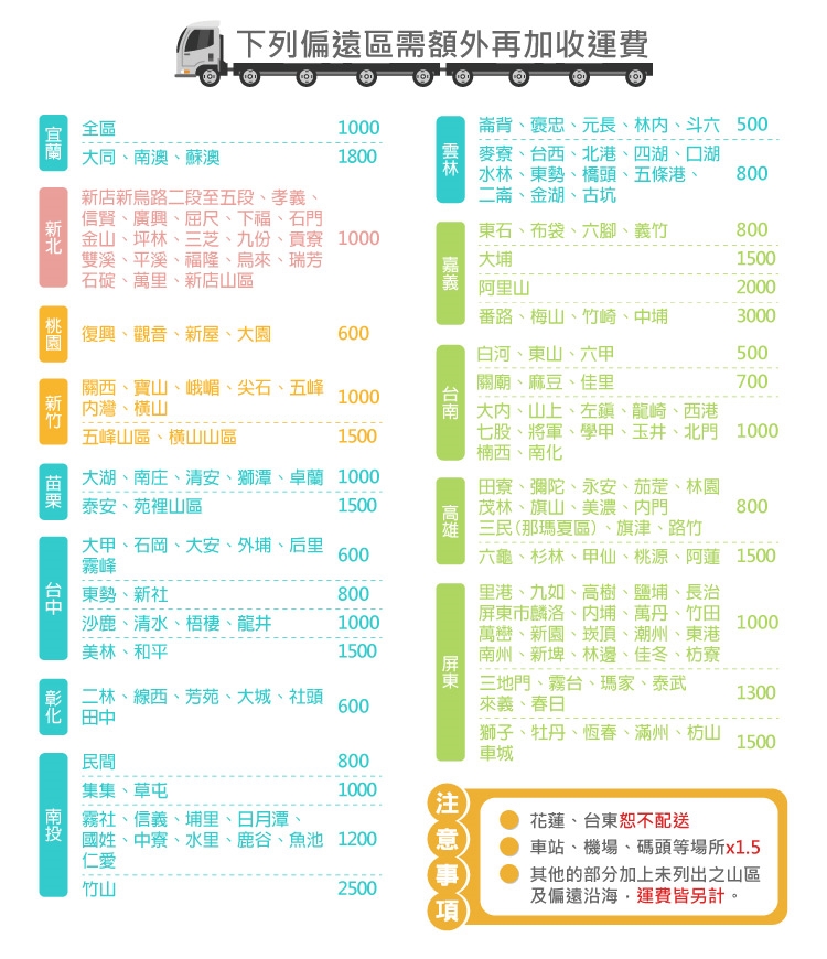 偏遠地區需加收額為費用,實際金額請參考圖片