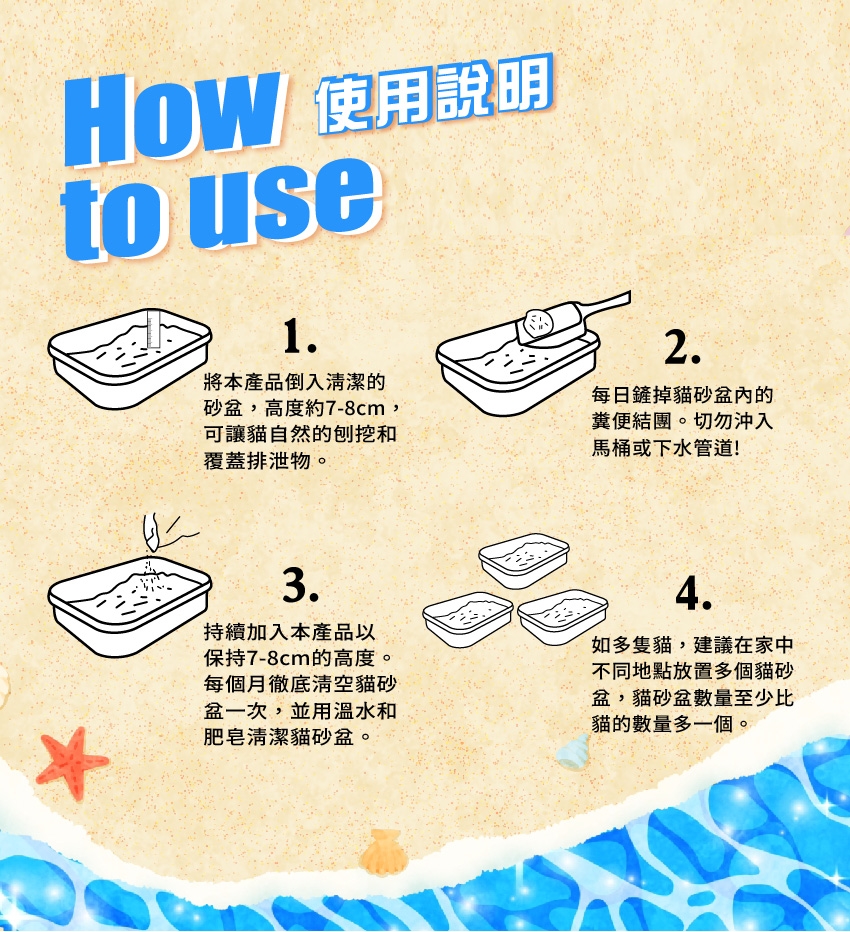將貓砂平舖於貓砂盆中約3-5公分