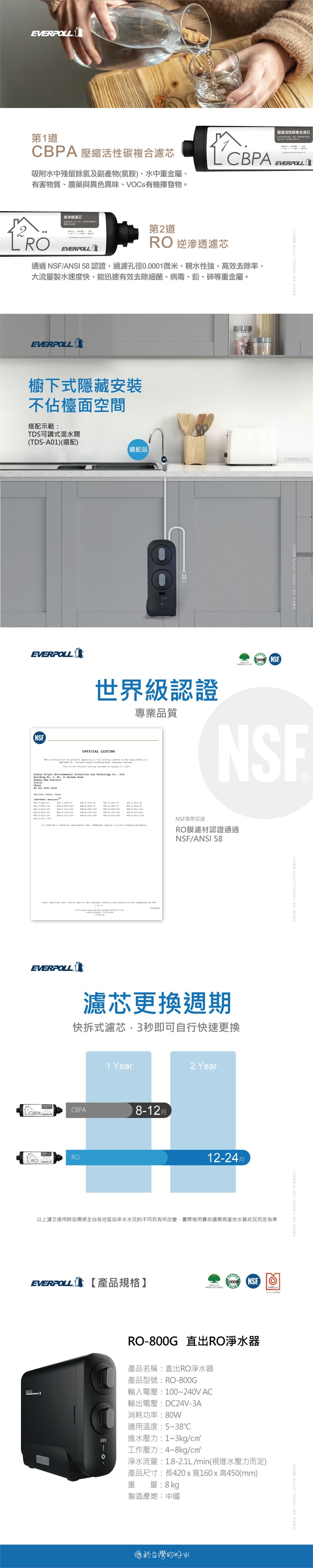 【EVERPOLL】RO800G直出式/RO逆滲透/純水機/RO機★搭配不銹鋼龍頭