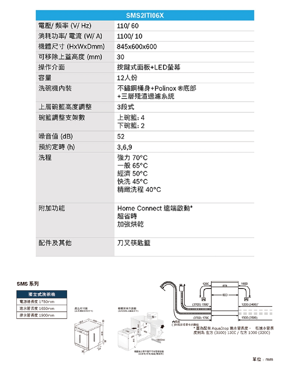※詳細功能請參考網頁的產品規格BOSCH家電官網