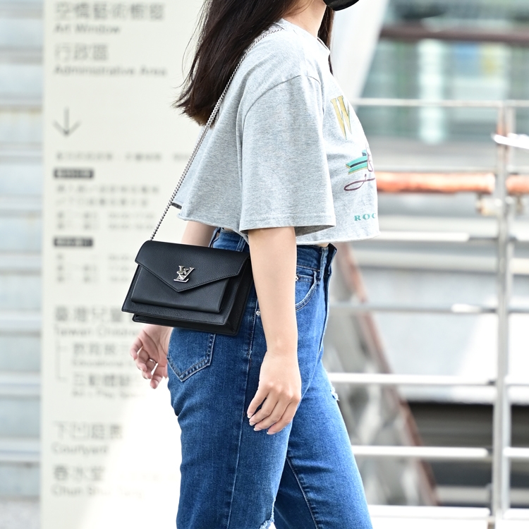 LV 這款MYLOCKME斜背鍊包,採用柔軟的小牛皮製作,翻蓋開口/內3卡片夾層+2貼袋+1拉鍊袋/外1貼袋,實用收納空間,可放長夾、手機等隨身物品,可把您的日常隨身物裝載得井然有序,可隨時變成肩背或斜背,設計極富趣味又實用,流滿都會時尚味道,是款時尚又實用的單品配件。