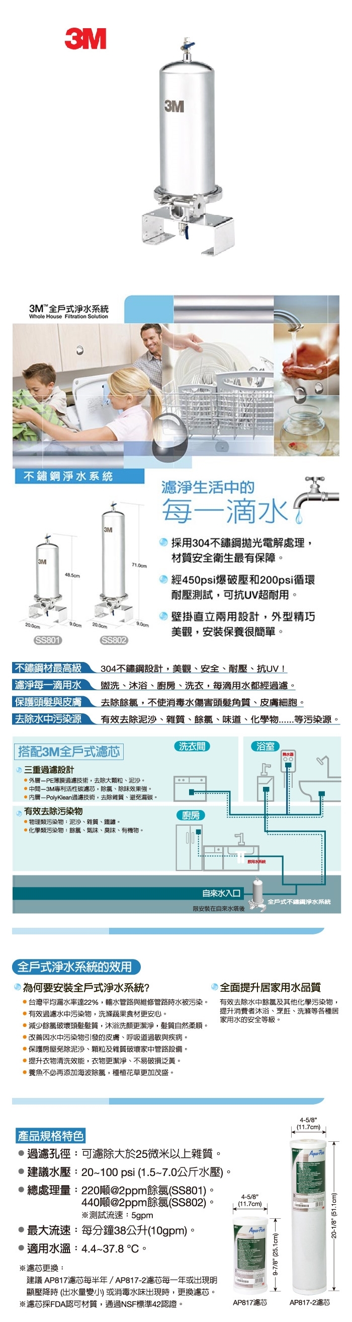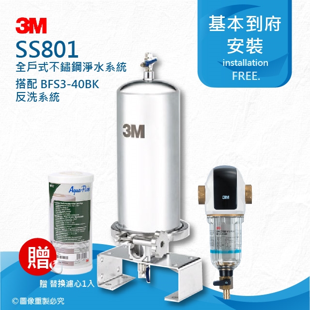 《3M》 SS801全戶式不鏽鋼淨水系統搭配BFS3-40BK反洗式淨水系統