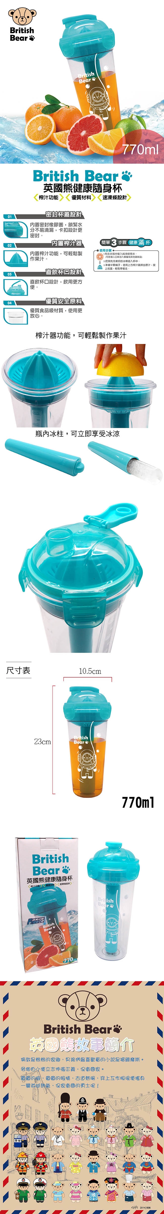 英國熊 夏日涼一夏冰柱隨身果汁杯-770ml BC-3021