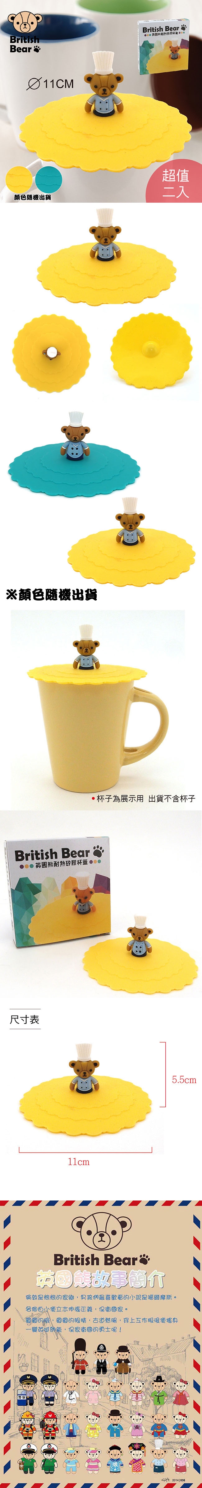 英國熊 造型公仔耐熱矽膠杯蓋 Y-011EC/Y-012EC 超值2入