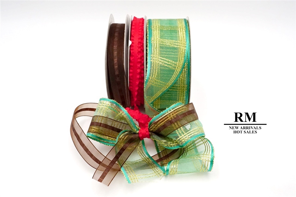 K303G-16-5932 1.5inch X25yard(綠+金色)