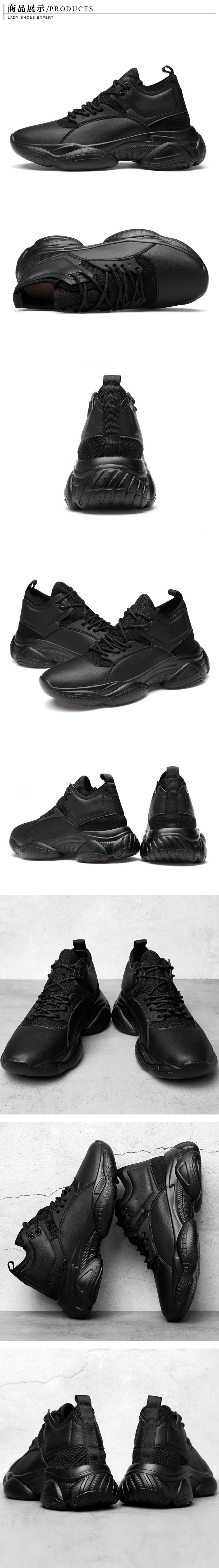 【Black Hole】運動鞋 厚底運動鞋/潮流網面拼接風格率性內增高厚底老爹運動鞋 -男鞋 黑