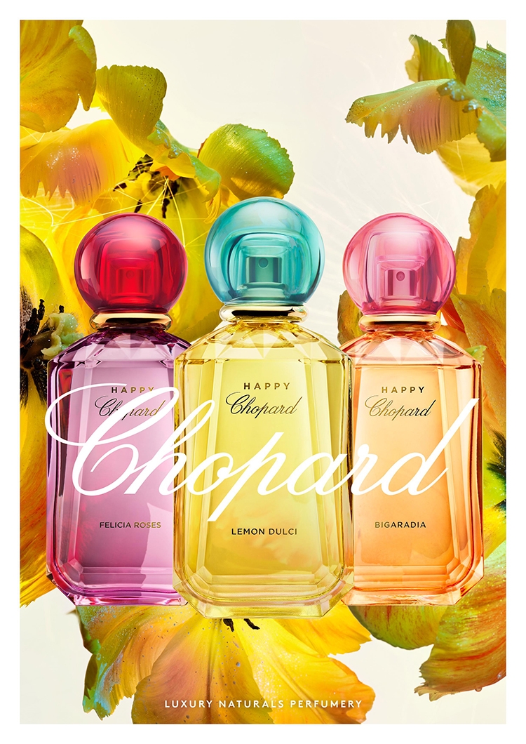Happy Chopard快樂蕭邦系列靈感始於Chopard聯合總裁及藝術總監Caroline Scheufele的創意視野,其積極樂觀的生活態度早已透過經典的珠寶創作呈現,現在她更藉由獨一無二的芳香體驗演繹品牌理念「Do good, feel good(活得快樂,感受快樂)」,運用最振奮人心的珍貴天然原材料研製出一系列珍貴香水。為了呼應Chopard的永續奢華之旅,Chopard Parfums藉著推出Happy Chopard,進一步將其永續旅程延展至天然及可持續發展的高級香水製作。