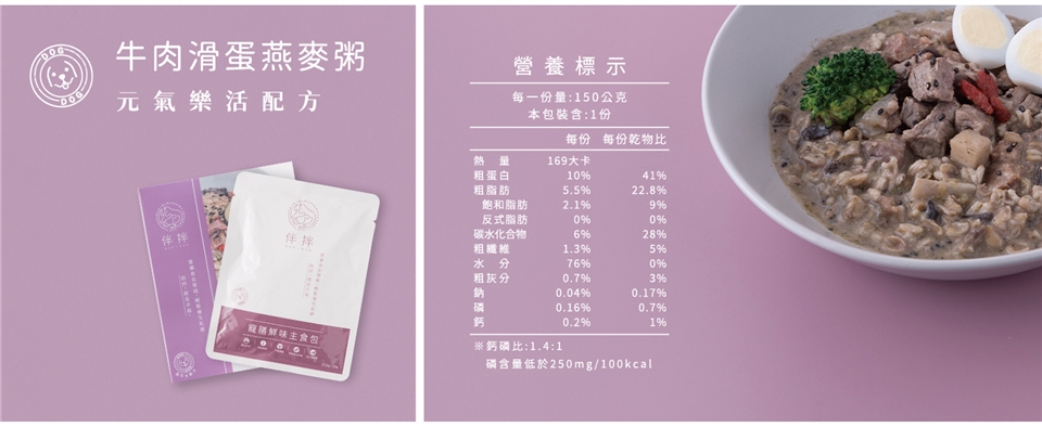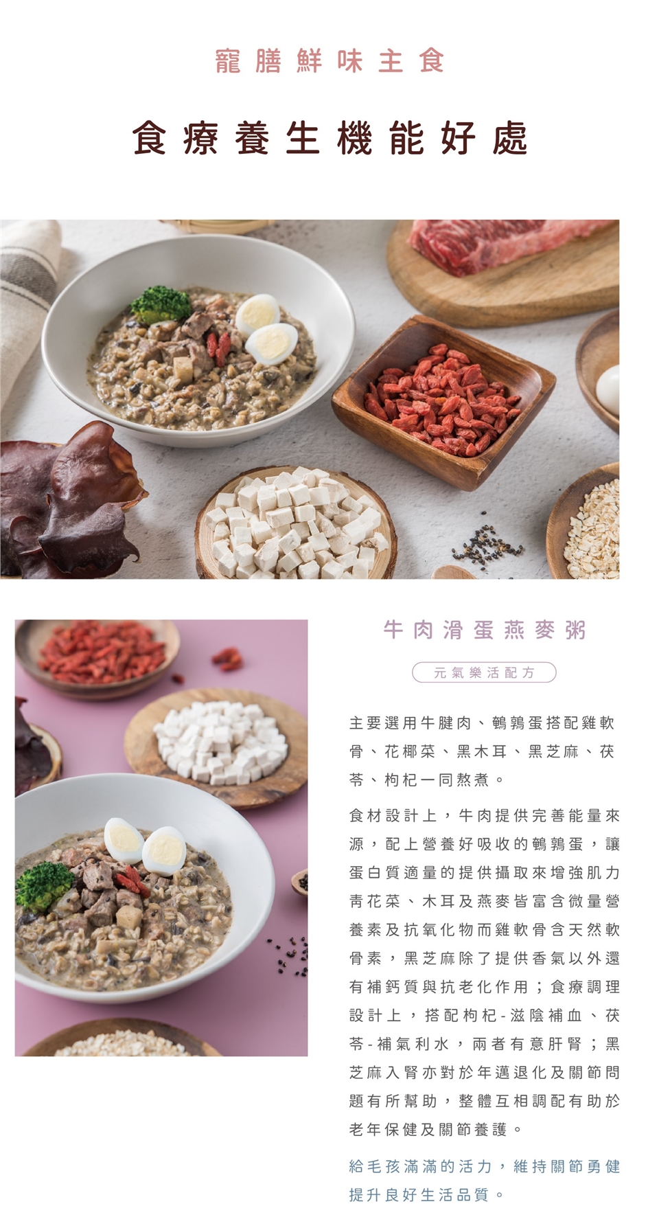 『元氣樂活配方』牛肉滑蛋燕麥粥 - 熟齡狗狗、關節日嚐養護、食療養生調理鮮食