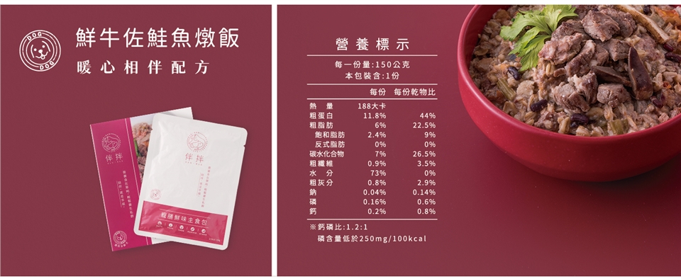『暖心相伴配方』鮮牛佐鮭魚燉飯 - 狗狗日嚐心血管養護、食療養生調理鮮食