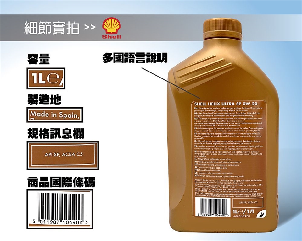 殼牌 Shell Helix Ultra SP 0W20 為配備渦輪增壓的新式引擎所開發的次世代產品。