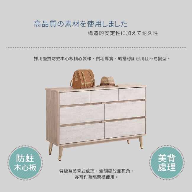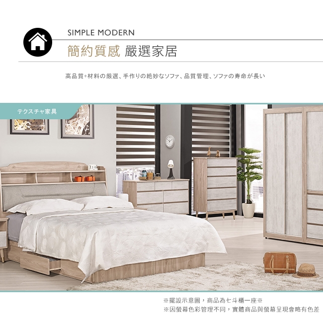 共七抽收納空間設計,讓您輕鬆收納衣物及各種臥室小物!