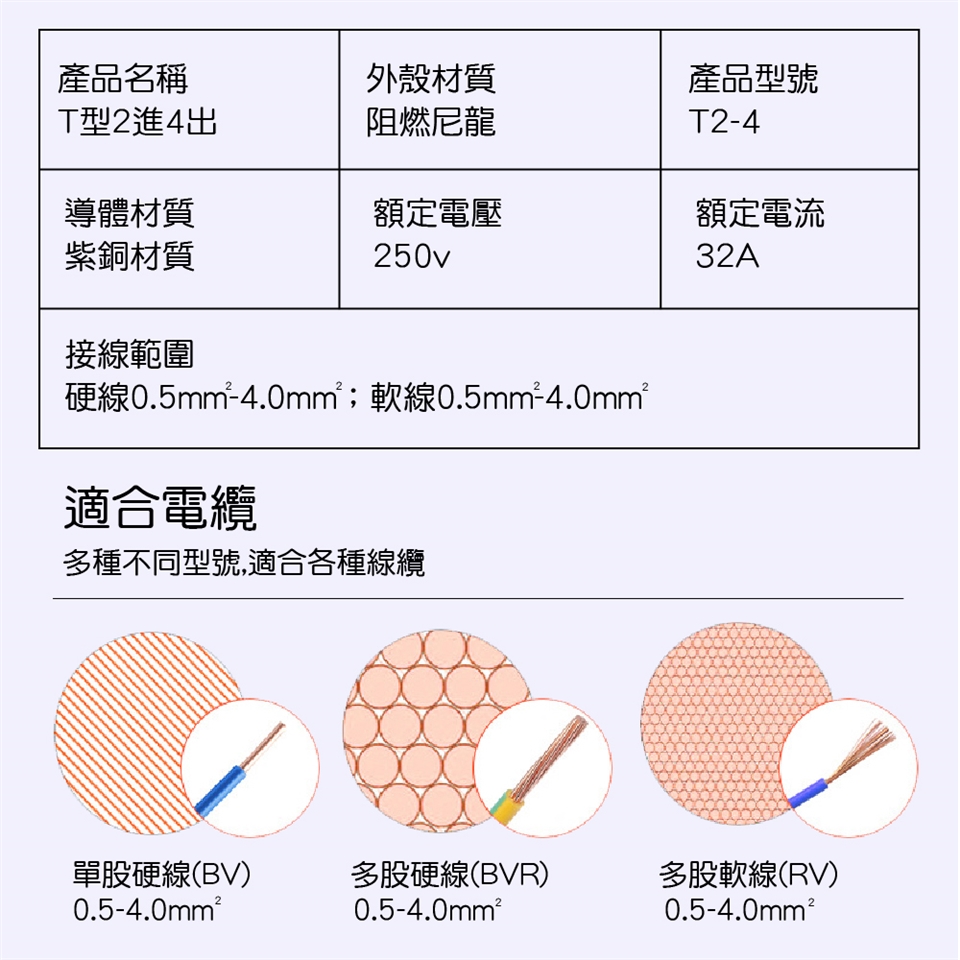適用導線:軟線、硬線:0.5mm-4.0mm