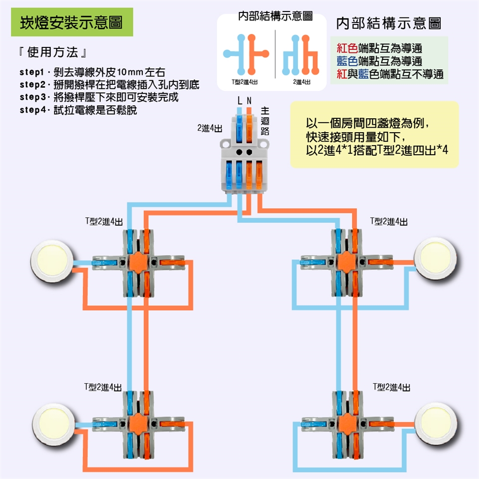 每個接頭,內部皆是相通(注意:不可以把正線、負線和地線接在同一個接頭,需要各自接一個接頭,正線接一個接頭,負線接一個接頭/地線接一個接頭),無論購買的是幾孔的;故可依需求選購需要的孔數,多孔數沒用到,空著即可