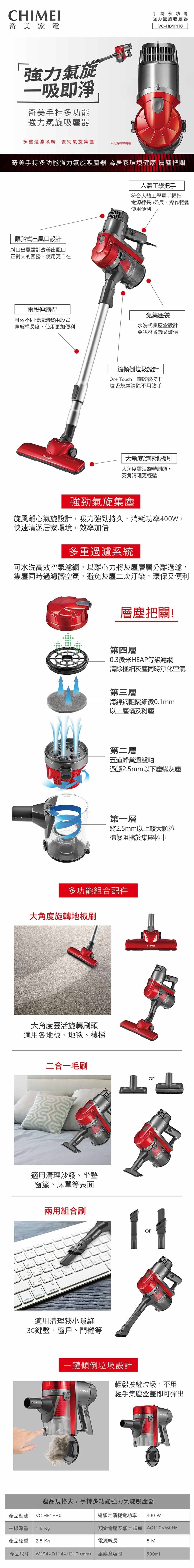 CHIMEI奇美 手持多功能強力氣旋吸塵器 VC-HB1PH0