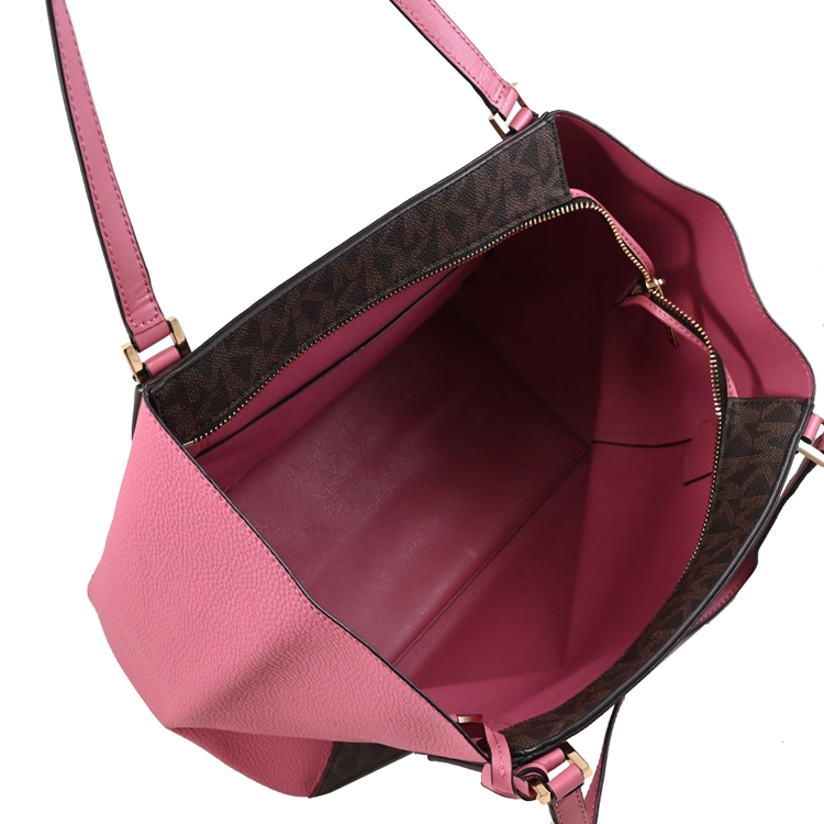 MICHAEL KORS 品牌(簡稱MK)成立於 1981 年,是美國設計師同名的品牌,MICHAEL KORS 同時也是決戰時裝伸展台節目知名評審,設計風格紐約時尚都會風,有男女服飾、皮包、手錶、眼鏡等系列商品,深受明星及消費者喜愛,除了女裝還有包包配件,設計獨特又時尚,近來深受年輕族群及輕熟女仕們的喜愛;此款採用拉鏈開口,內有1內袋等供收納,1圓形LOGO吊飾,大容量空間更加實用。