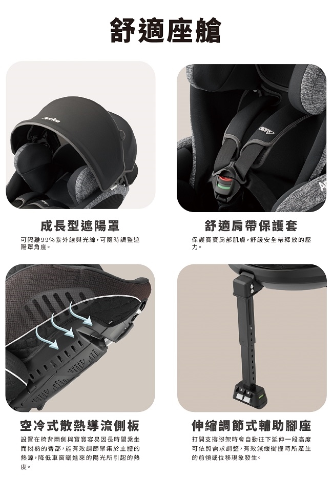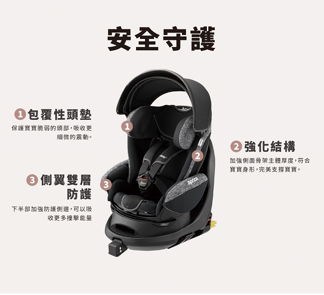☆「平躺+後向+前向 ‧ 3向3階段自由選擇」多重防護設計與配備ISOFIX規格,安全再升級!